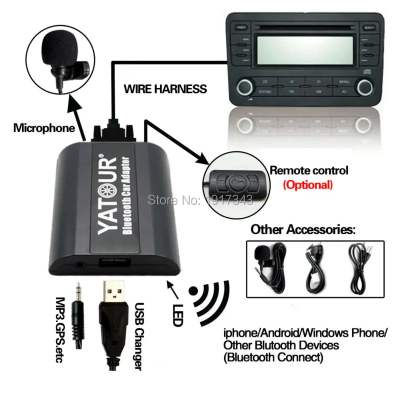 Автомобильный адаптер Yatour Bluetooth (BTA) выпущен. Разработано в соответствии с оригинальным протоколом OEM car stereo,