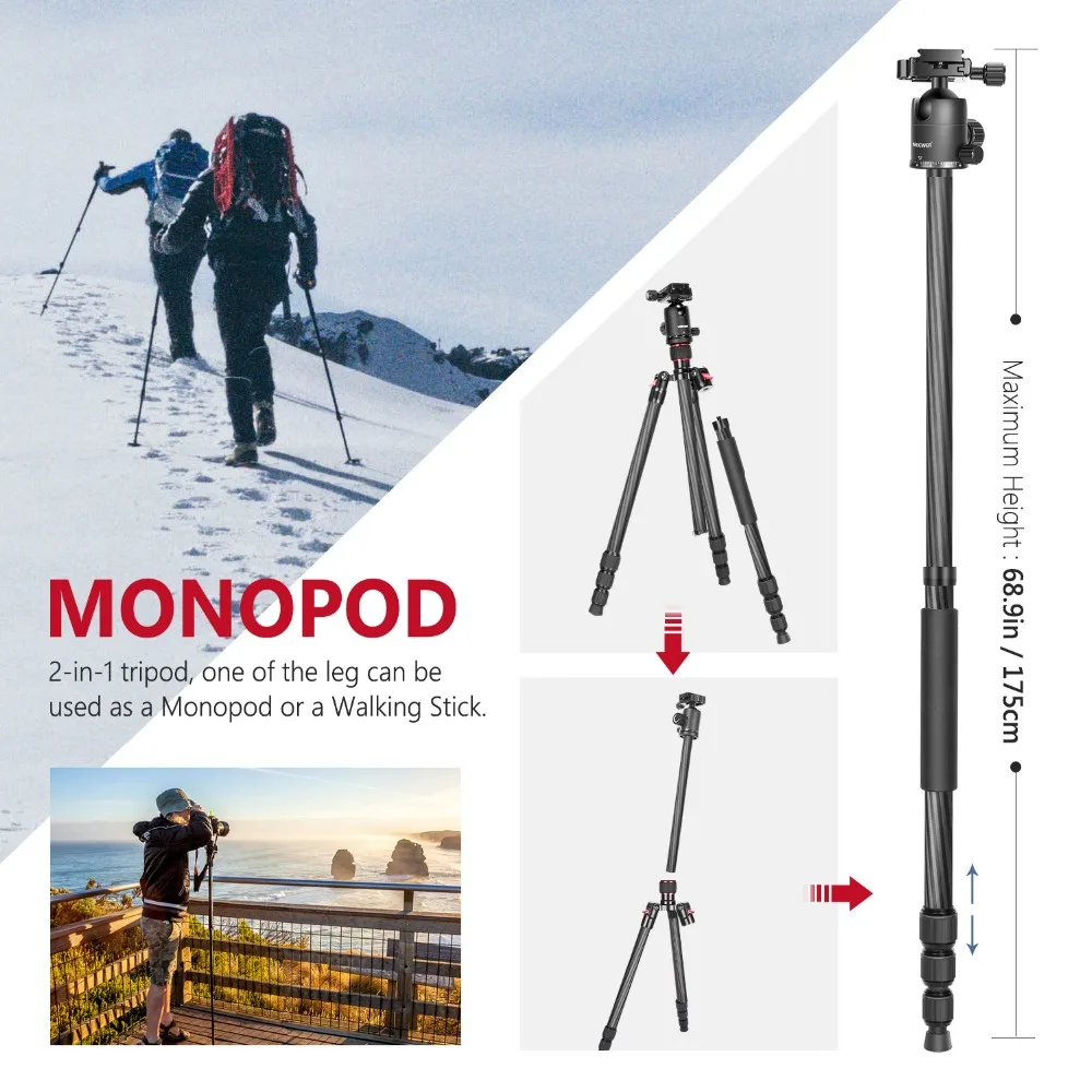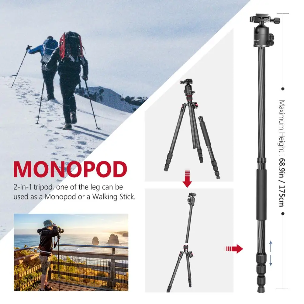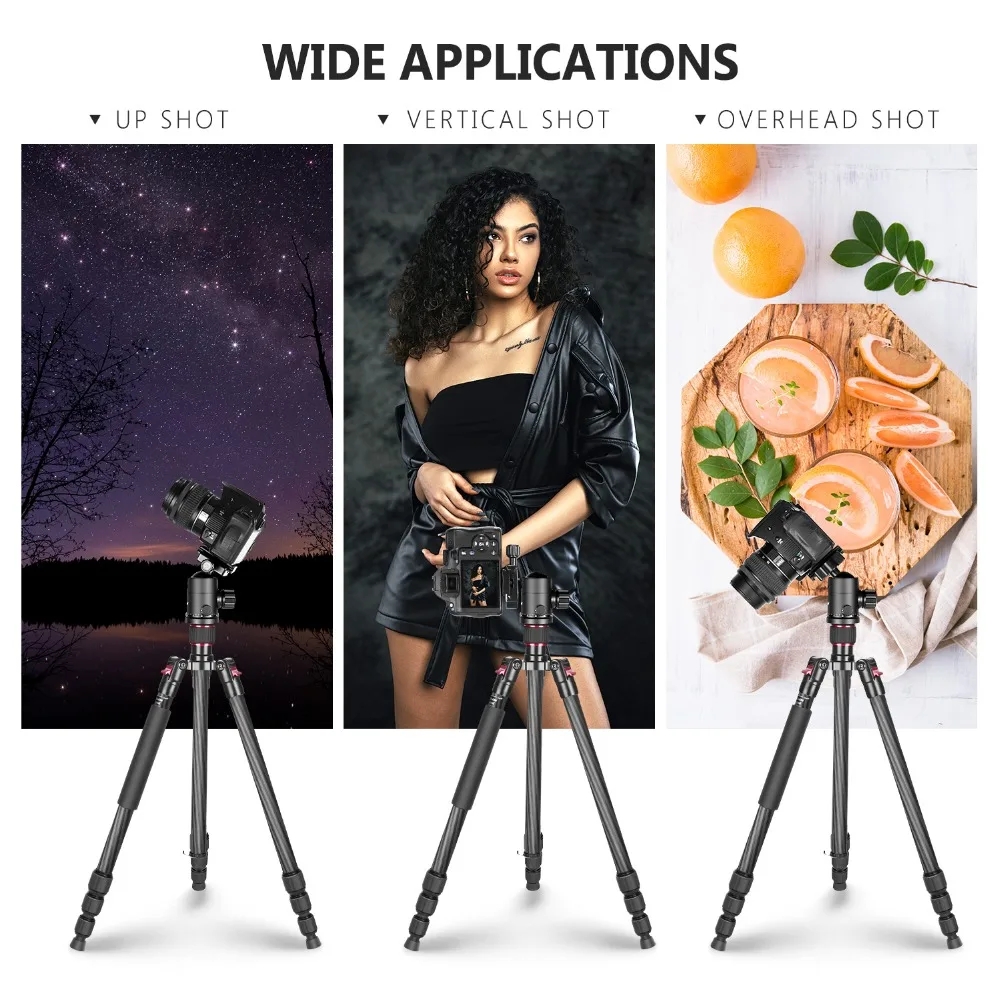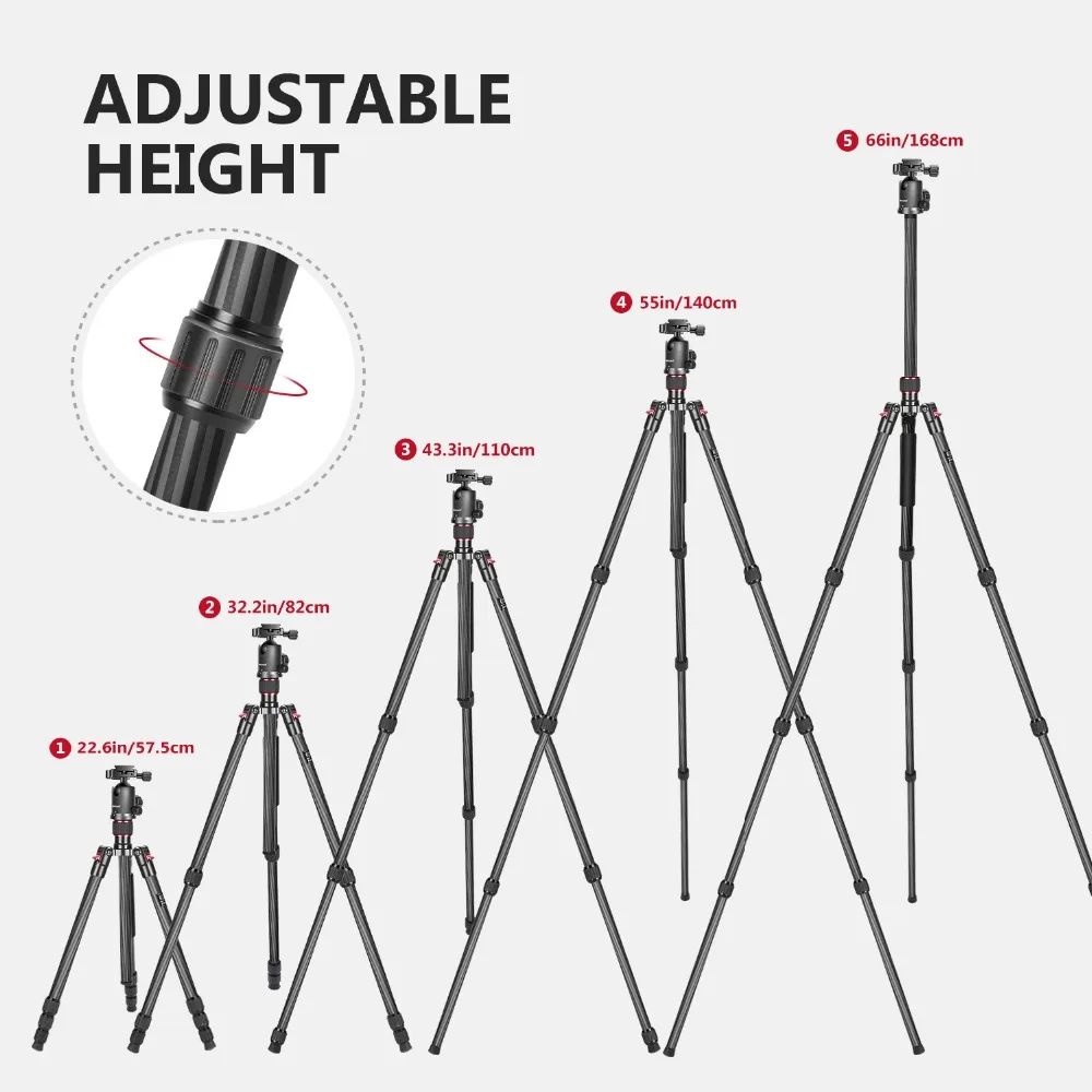 Портативный штатив Neewer из углеродного волокна, легкий Трипод для камеры, 66168 см, + шаровая Головка 360 градусов + пузырьковый уровень для Canon, Nikon