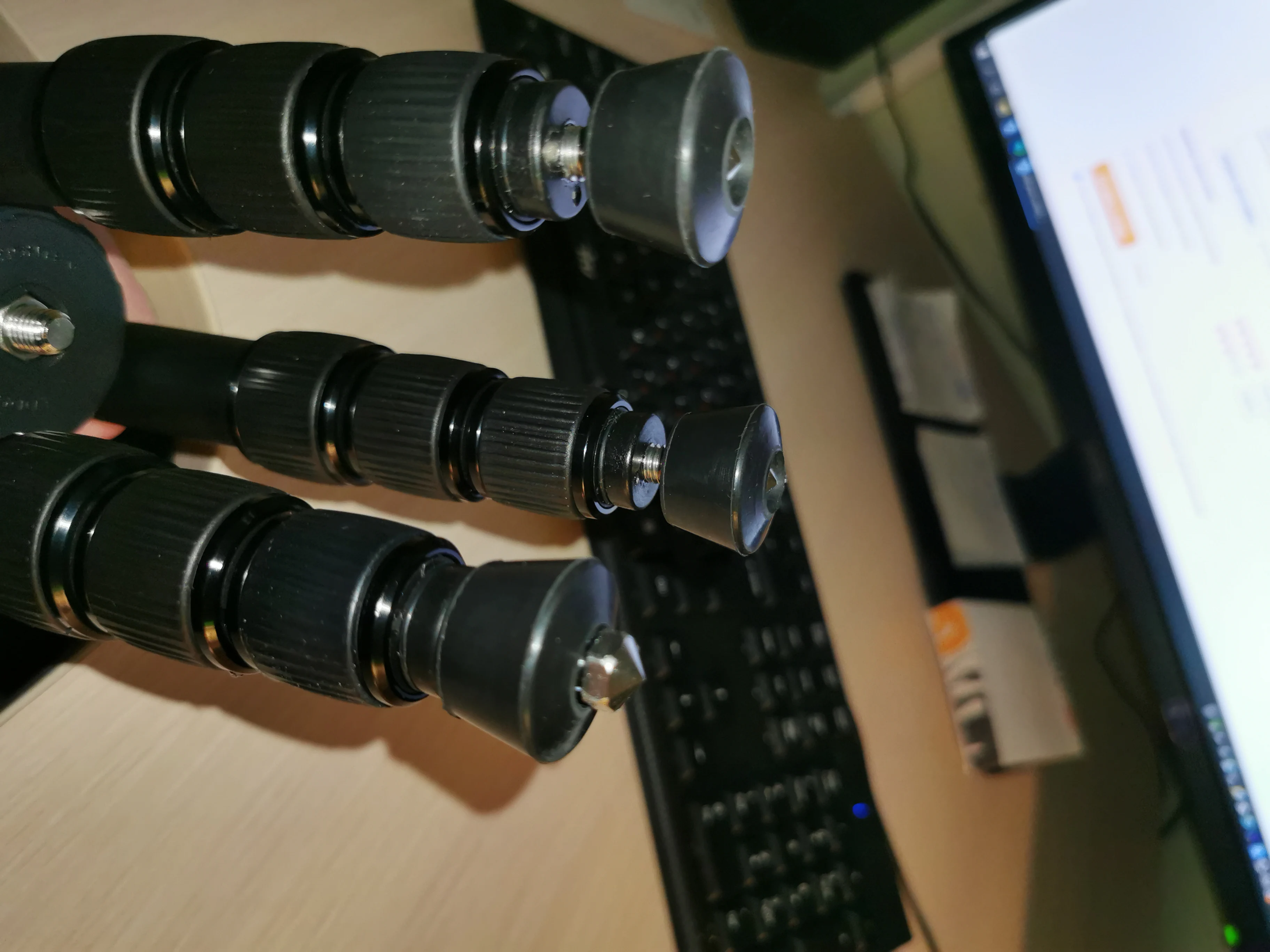 Пожалуй, самый доступный штатив из карбона (взял за 3750 на распродаже). И да, похоже это и правда карбон, судя по жесткости (ну или пластик, усиленный карбоном снаружи). Все детали головы металлические, сделано качественно, ручки вращаются мягко и плавно. Режим монопода - интересное дополнение, и им даже можно пользоваться, но держать тяжело, т.к. на конце целая камера, и еще голова весит немало. Хотя если упереть ножку в бедро, то вполне можно снимать себя с 1+ метра. На концах ножек есть шипы, похоже несъемные. Инструкция только на китайском, но она мне и не нужна. Если вам нужна, то там есть много понятных картинок. Весь штатив в сборе у меня весит 1580 грамм. Чехол тоже неплохого качества. В остальном нечего добавить к описанию продавца. Изготовлено четко, я доволен.