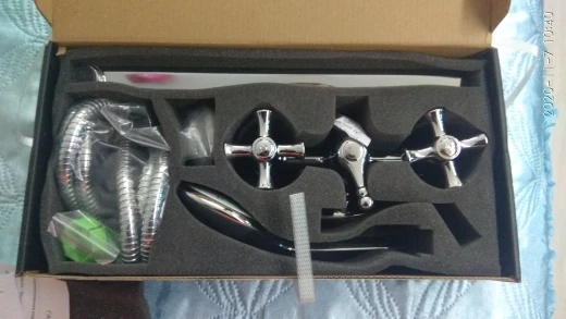 Товар пришел очень быстро, за неделю. Доставка была курьером до двери. Курьер заранее позвонил и договорились о времени доставки. Кран, сам по себе шикарный. По весу тяжёлый. Я бы сказал увесистый, установил минут за 12. Все работает отлично. только вот единственное что для меня не очень удобно на самих кранах не нарисовано где красная горячая и синяя холодная. Всем советую.