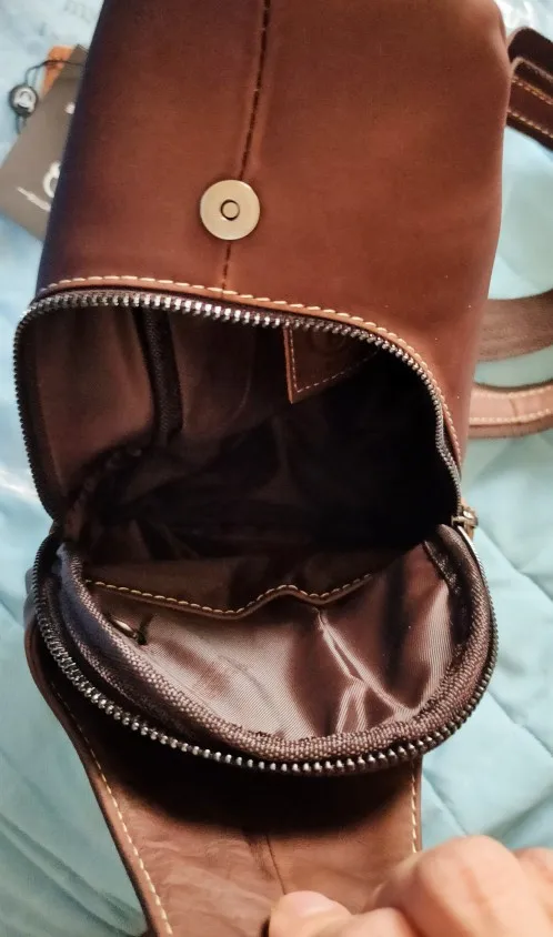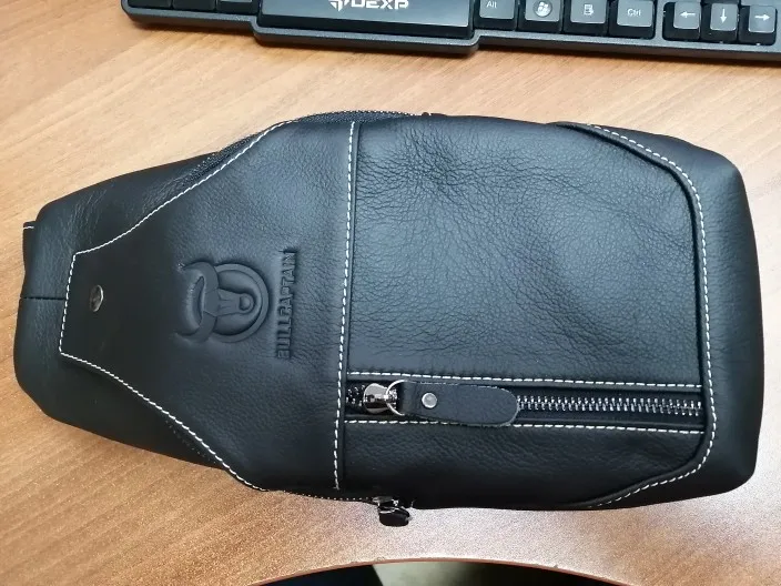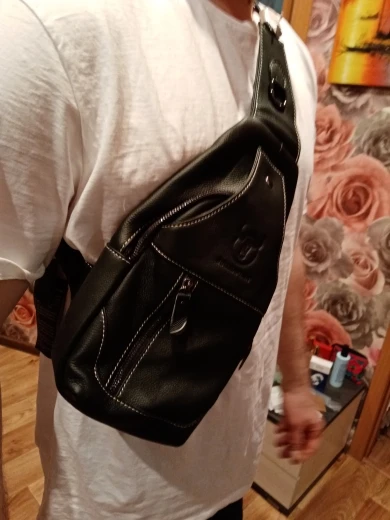 Все как в описании. Кожа не такая как у сумок за 20000, но носить на куртке от Пьера Кардена не стыдно. В Москве в нонейм магазине подобное качество стоит от 4500. Брендовые выше. Сидит замечательно. Отделений хватает. Влезает все, ради чего приходилось носить сумку или рюкзак. Пришла за три дня примерно.