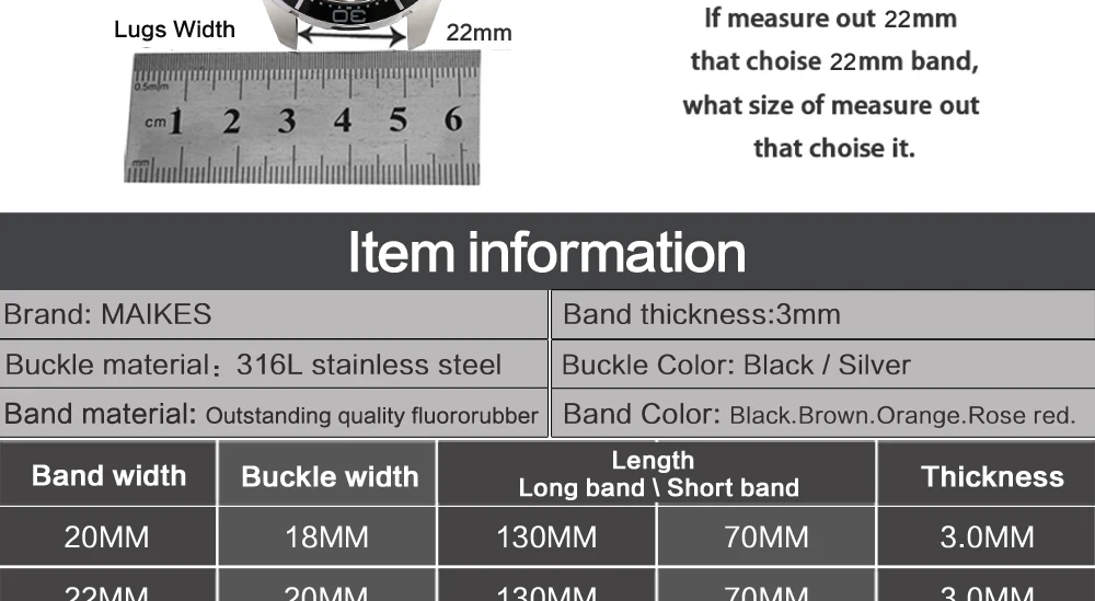 Ремешок MAIKES для часов, спортивный резиновый браслет для дайвинга...