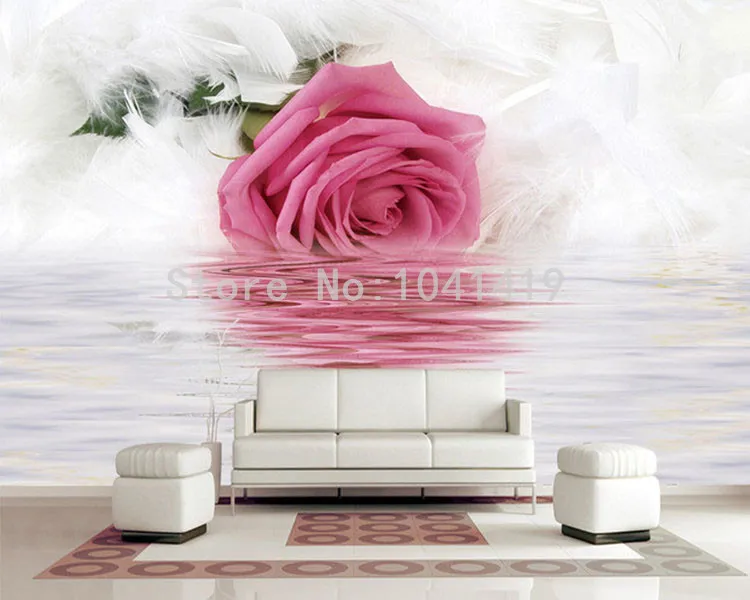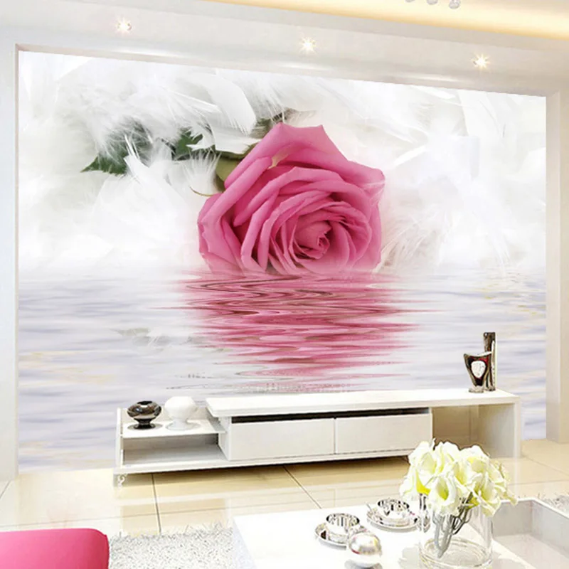Романтические фотообои с розовыми перьями, отражающими воду, современное искусство, дизайн интерьера, Декор, фрески, 3D красивые обои с цветами