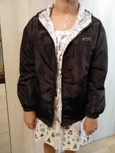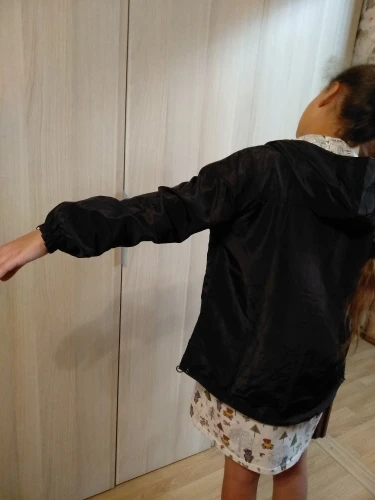 Ветровка хорошая, двухсторонняя. Только карманы не в ту сторону, нужно вывернуть руку в другую сторону чтоб залезать в них. Может так задумано, но очень не удобно. Это единственный минус. А так рекомендую к покупке. Брала на доску 12 лет, ОГ 90,ОБ 96, все отлично.