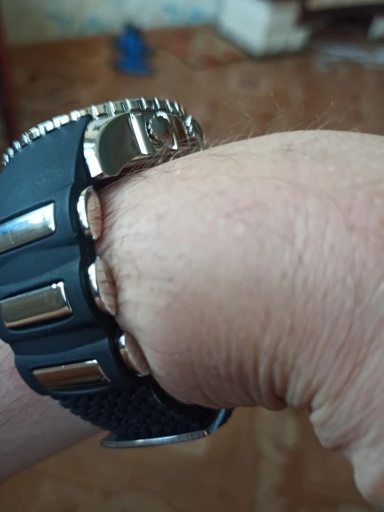 Часы смотрятся бомбически, но при получении обратили внимания на секундную стрелку, она не работала, а болталась по циферблату, и упаковка отстой, без коробки, просто в пакете(((