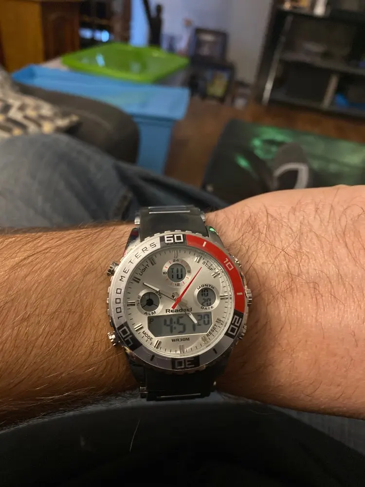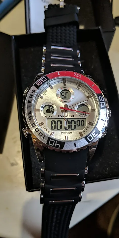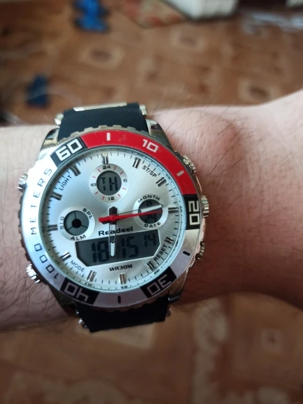 На фото часов мне кажется белый цвет, это серебро, а не белый В описании цвета указано, что часы красного цвета, это вводит в жизнь. Если бы он был описан как серебряный в одежде, я бы не заказал часы