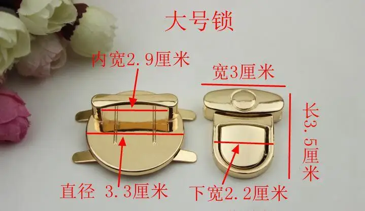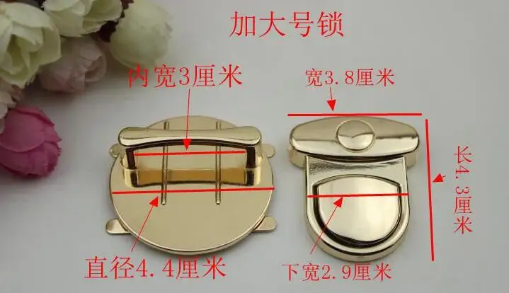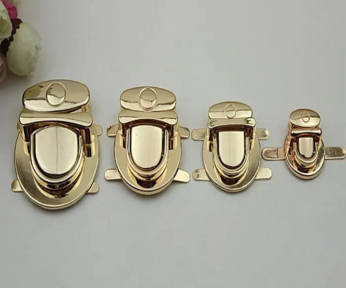 (10 шт.лот) высококачественное гальваническое покрытие 4 золотых овальных кожаных вставок с замком, металлические аксессуары для сумок, декоративные пряжки