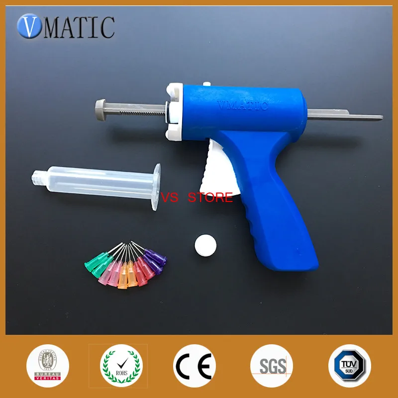 Подробная информация 1 шт. 10cc/ml синий Дозирующий пистолет 1 шт. 10cc/мл шприц 1 шт 10cc/мл шприц поршень 10 шт дозирующих игл