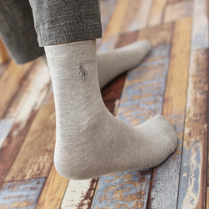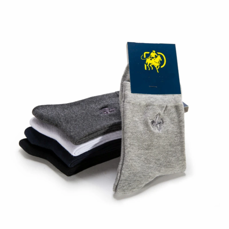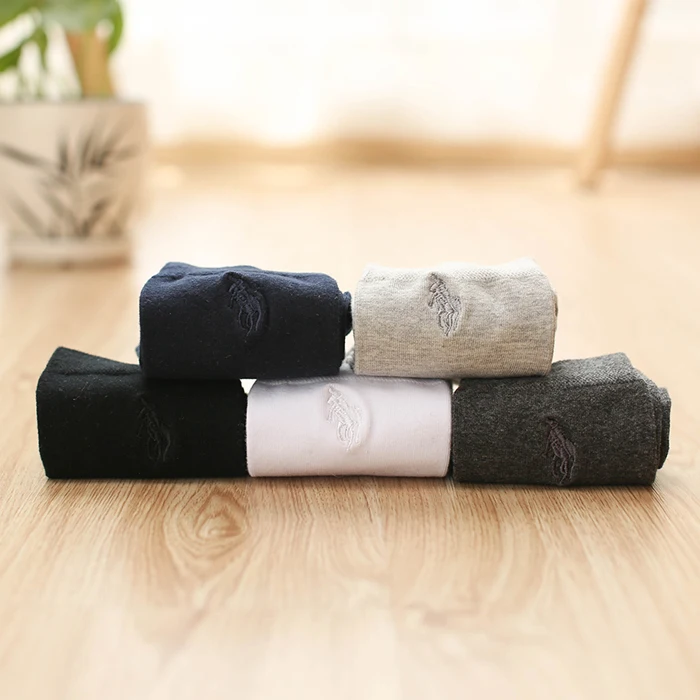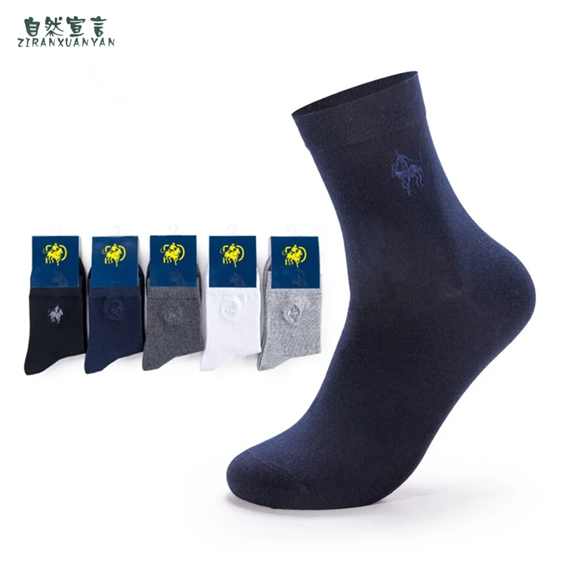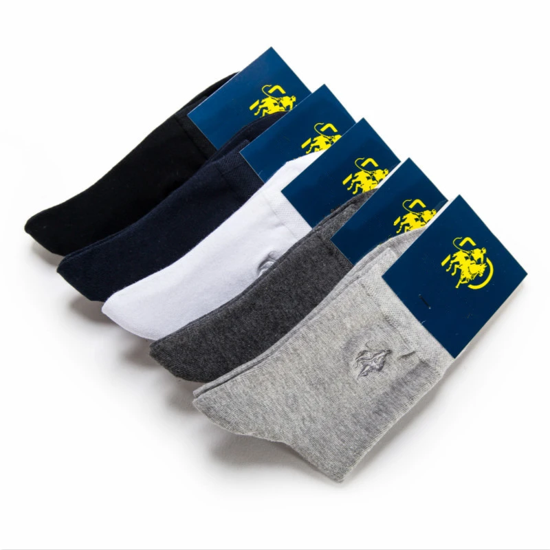 Мужские хлопковые носки с вышивкой, Классические однотонные повседневные носки, 5 цветов, Осень-зима 2020