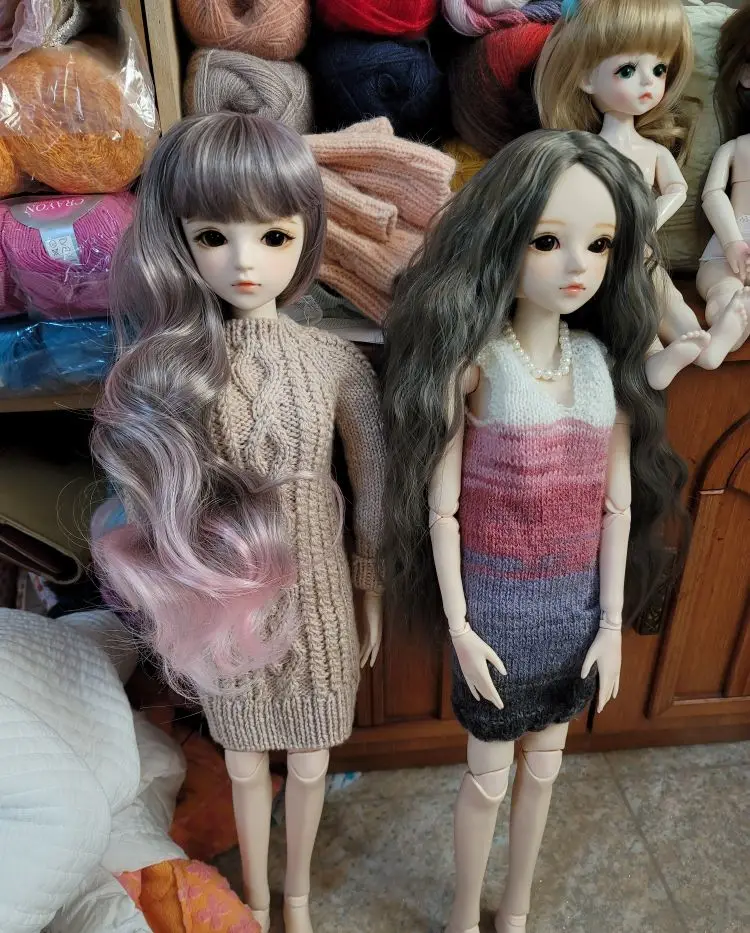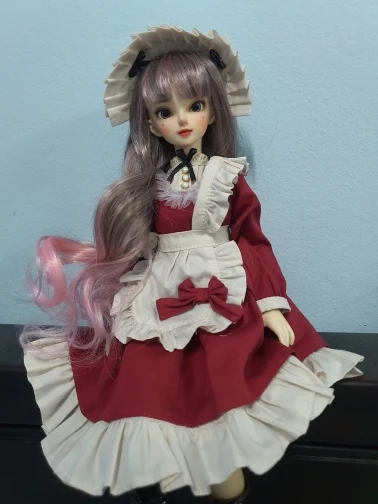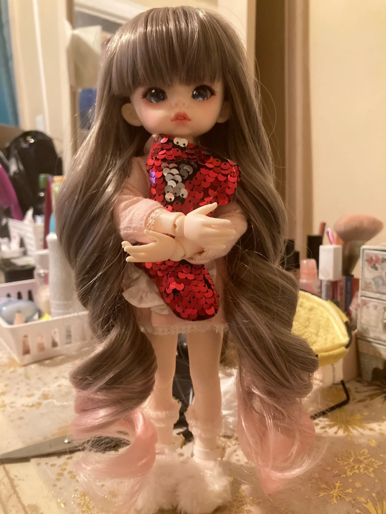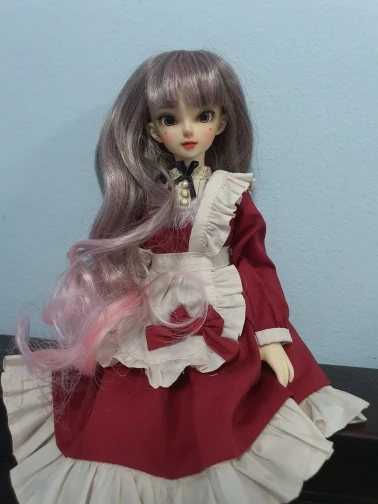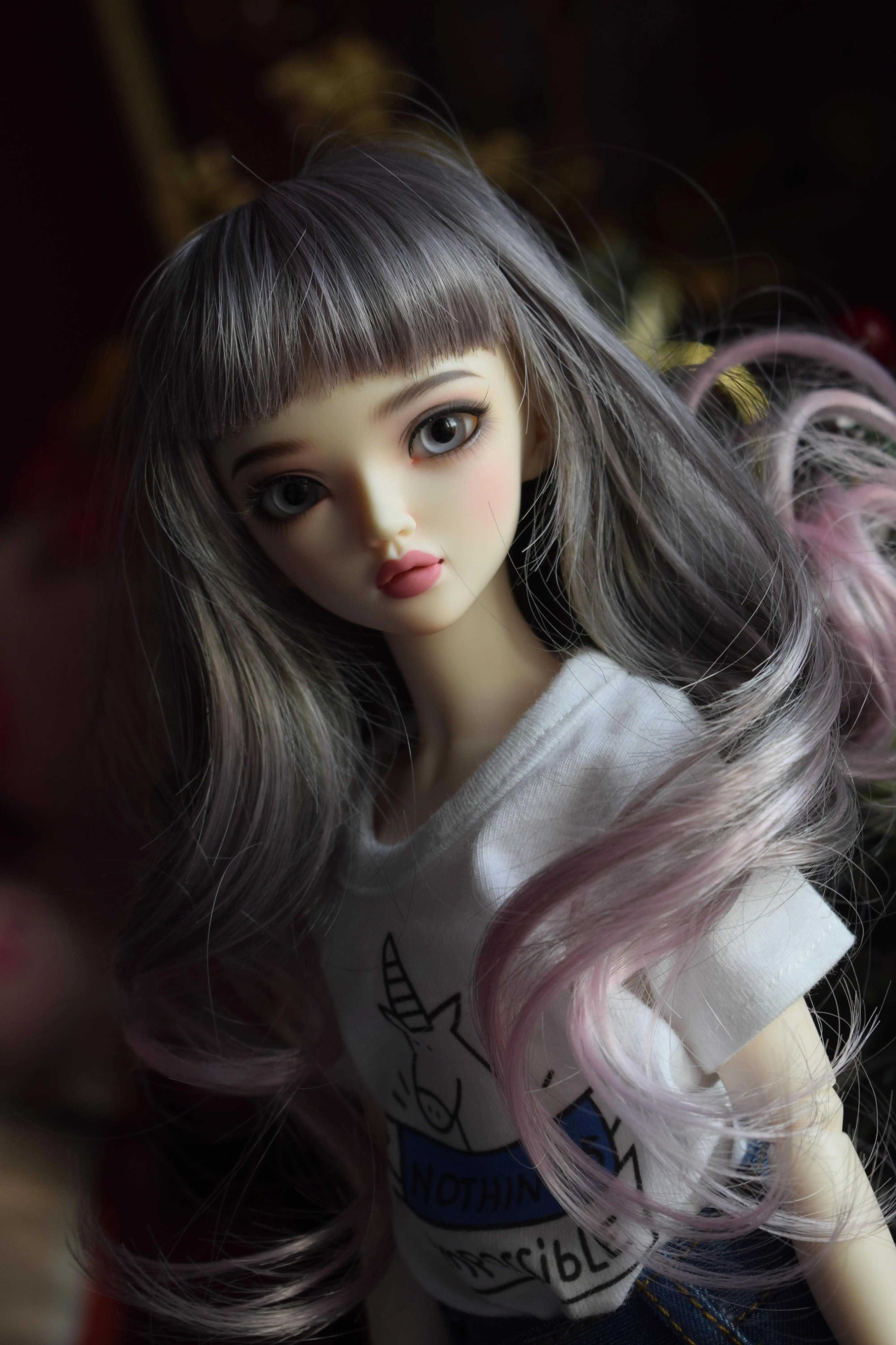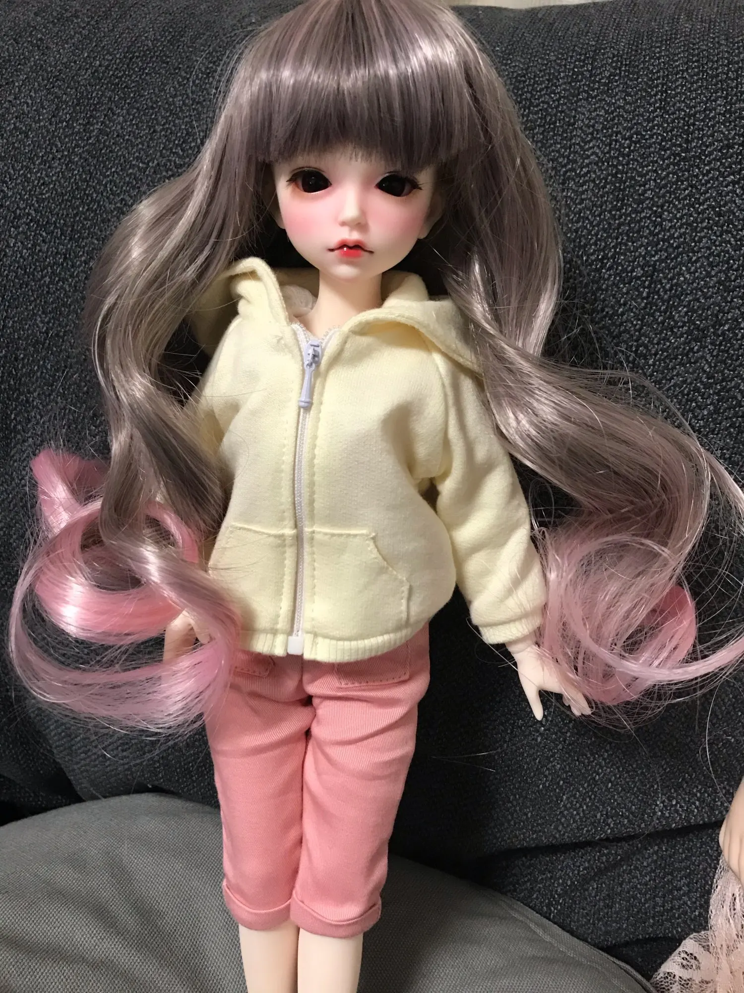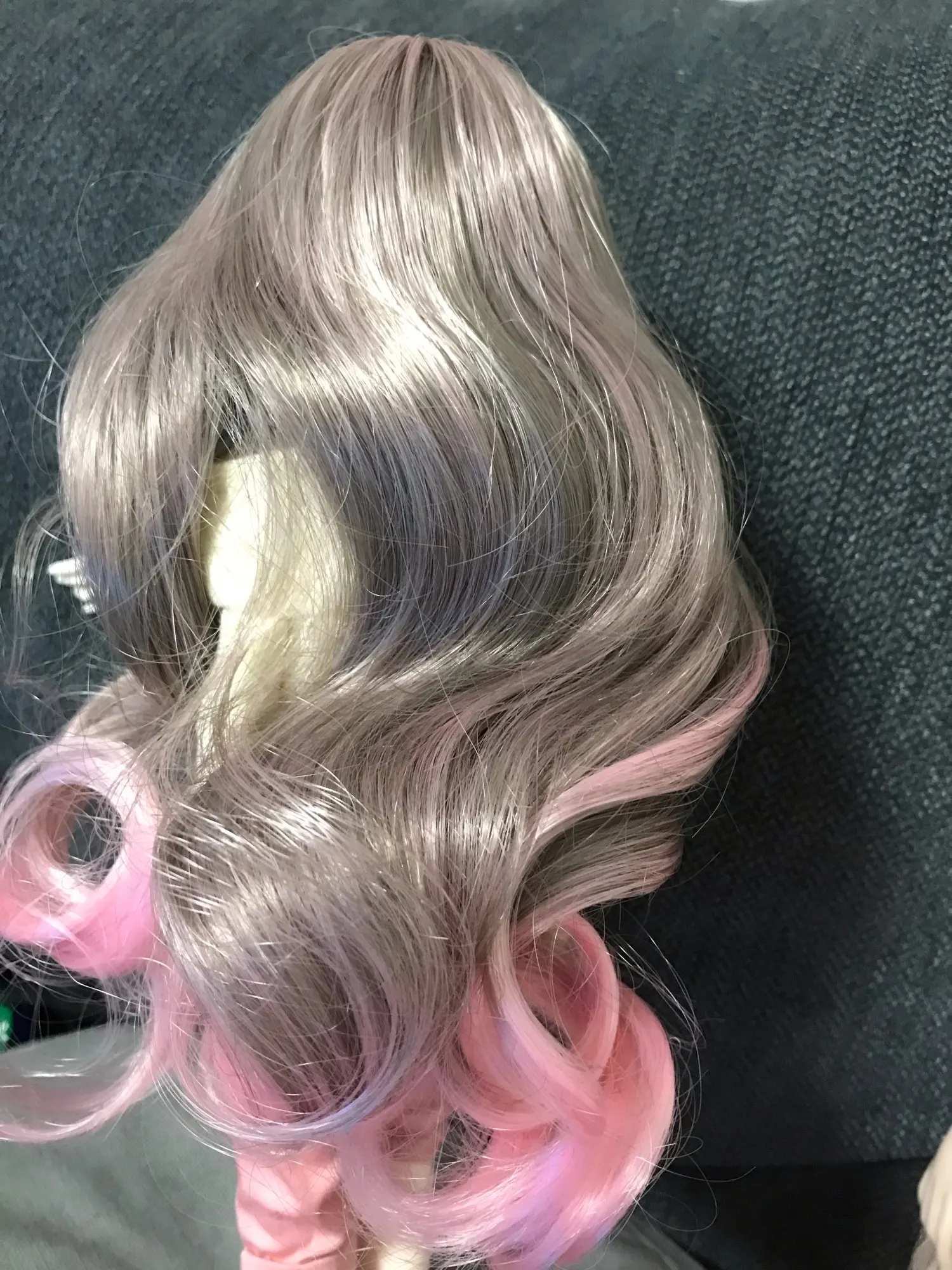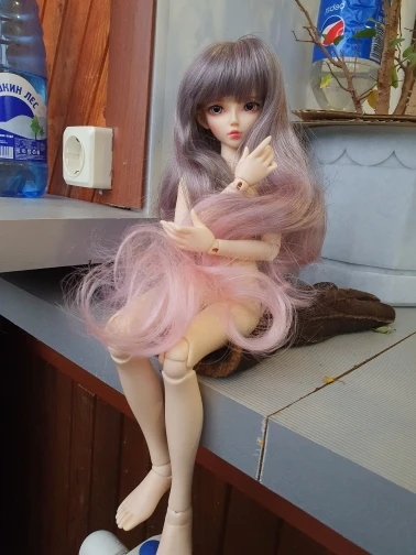 Доставка была быстрой, и парик действительно очень нравится, как локоны и качество парика хорошее. Их полосы розового цвета, которые я не ожидала, что верхняя часть парика будет просто серой, но мне это нравится с розовыми полосками. Моя другая кукла, которая составляет 1/4, еще не прибыла, поэтому я надел парик на свою 1/6 куклу, хорошо сидит.