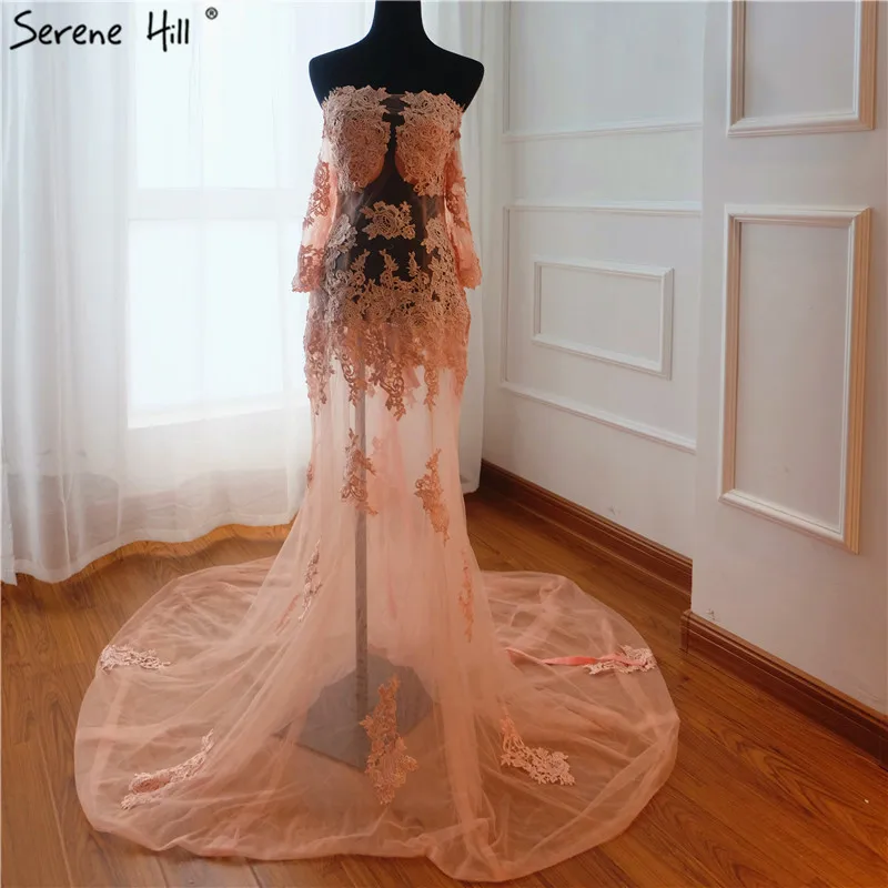 Последний дизайн персиковые вечерние платья с длинными рукавами 202...