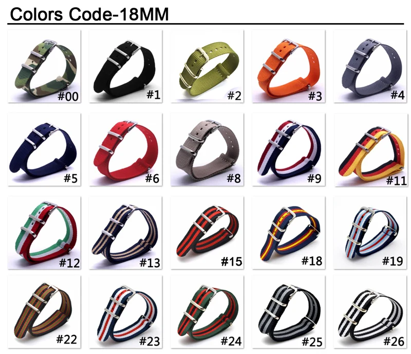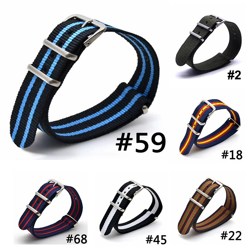 Ремешок из нейлоновой ткани для наручных часов, спортивный армейский браслет в стиле НАТО, много цветов, черный синий, 18 мм
