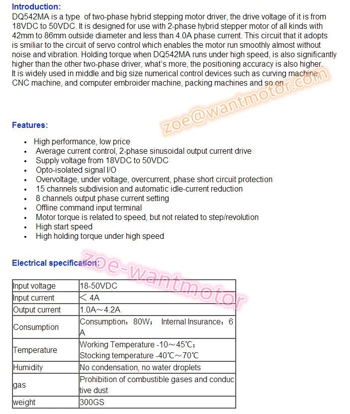 Рекомендуем: у нас также есть подходящий Драйвер шагового двигателя: DQ542MA, если вам также нужно, пожалуйста, сообщите мне, я покажу ваши детали.