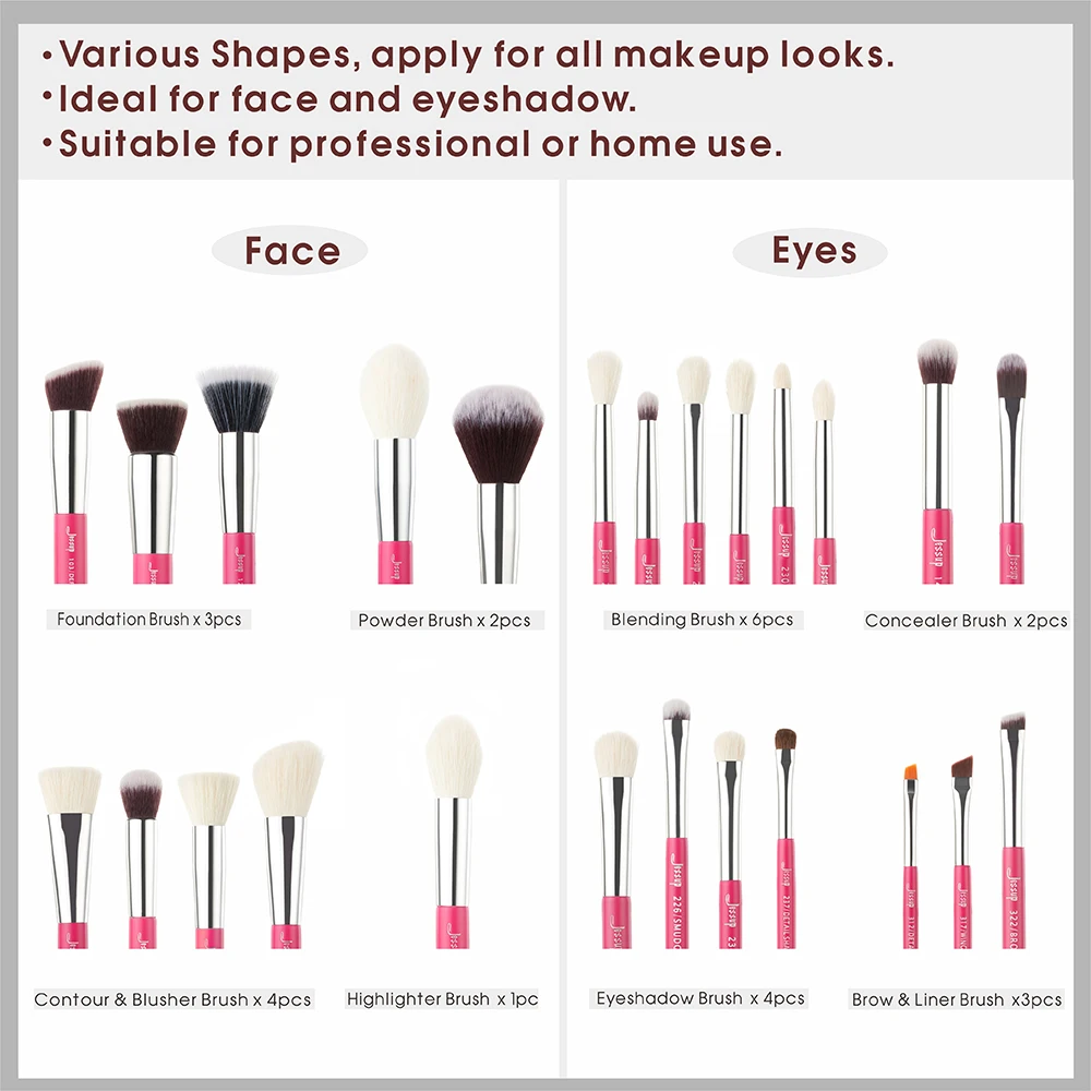 T195 Jessup 25 шт. розово-Кармин/Серебряный набор кистей101 уход за кожей лица Контурная кистьДлина кисти: около 17,5 см длина кончика: около 4,7 смМатериал ручки: дерево материал ворсинок: натурально-синтетический ворсКонтур и нанесение пудры103 Definer буфераДлина кисти: около 17,5 см длина кончика: около 2,5 смТип ручки: дерево материал ворсинок: синтетический ворсПодробный нанесение и растушевка тонального крема104 буфераДлина кисти: около 17,5 см длина кончика: около 2,5 смТип ручки: дерево материал ворсинок: синтетический ворсДля нанесения и растушевки тональной основы, кисть для пудры и минеральная косметика105 освещенияДлина кисти: около 16,7 см длина кончика: около 3,2 смМатериал ручки: дерево материал ворсинок: натурально-синтетический ворсПрименяются для нанесения хайлайтера106 порошокДлина кисти: около 15,8 см длина кончика: около 4,8 смТип ручки: дерево материал ворсинок: синтетический ворсНанесите свободные и компактная пудра109 уход за кожей лица КраскиДлина кисти: около 14,2 см длина кончика: около 2,1 смМатериал ручки: дерево материал ворсинок: натурально-синтетический ворсНанесите контур порошок110 уход за кожей лица ФормаДлина кисти: около 15,4 см длина кончика: около 2,2 смТип ручки: дерево материал ворсинок: синтетический ворсКонтура лица Форма с Кремовым цветом, Петти-юбка и порошковых средств122 гитара Пти Буше ЗернистостьДлина кисти: около 15,1 см длина кончика: около 1,8 смМатериал ручки: дерево материал ворсинок: натурально-синтетический ворсНаносите крем Кисть для румян, кисть для консилера и хайлайтера125 ЗернистостьДлина кисти: около 16,5 см длина кончика: около 3,2 смТип ручки: дерево материал ворсинок: синтетический ворсНанести макияж нанесения тонального крема127 прозрачные щекиДлина кисти: около 15,6 см длина кончика: около 3,2 смМатериал ручки: дерево материал ворсинок: натурально-синтетический ворсНанесите Порошковые румяна142 маскирующая буферная кистьДлина кисти: около 15,6 см длина кончика: около 1,6 смТип ручки: дерево материал ворсинок: синтетический ворсДля нанесения и растушевки консилера221 для нанесения мягких акцентовДлина кисти: около 16,6 см длина кончика: около 1,8 смМатериал ручки: дерево материал ворсинок: натурально-синтетический ворсКисть для растушевки теней для век до совершенства222 кисть для тенейДлина кисти: около 15,2 см длина кончика: около 1,5 смМатериал ручки: дерево материал ворсинок: натурально-синтетический ворсБолее нанесение теней для век223 гитара Пти Буше для смешивания теней для векДлина кисти: около 15,4 см длина кончика: около 1,3 смТип ручки: дерево материал ворсинок: синтетический ворсДля нанесения акцентов226 кисть для растушевкиДлина кисти: около 16,5 см длина кончика: около 0,7 смТип ручки: дерево материал ворсинок: синтетический ворсРазмазывает тени и краску для век вдоль ресниц227 мягкая контурная кистьДлина кисти: около 16,2 см длина кончика: около 1,2 смМатериал ручки: дерево материал ворсинок: натурально-синтетический ворсДля мягкой растушевки теней для век228 складкаДлина кисти: около 16,4 см длина кончика: около 2,1 смМатериал ручки: дерево материал ворсинок: натурально-синтетический ворсСмешивание и растушевка теней в складке века230 карандашДлина кисти: около 16,3 см длина кончика: около 1,2 смМатериал ручки: дерево материал ворсинок: натурально-синтетический ворсТочечная растушевка и нанесение теней вдоль ресн