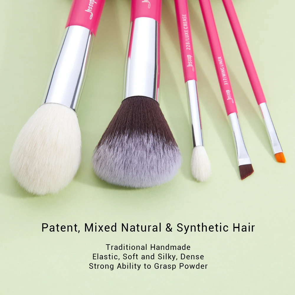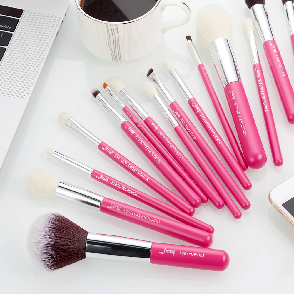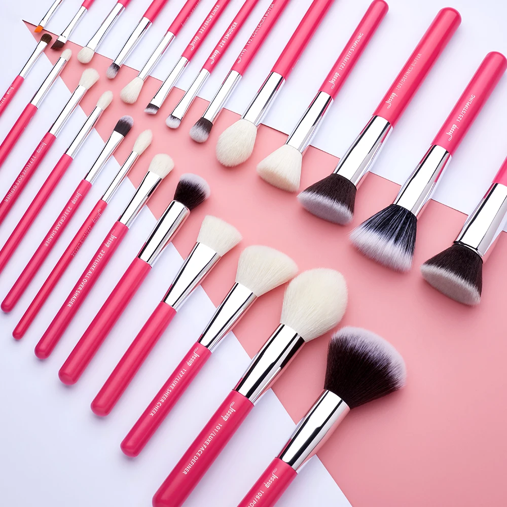 Кисти для макияжа Jessup, 25 шт., розово-карминовыесеребристые, набор профессиональных кистей для макияжа, набор инструментов для нанесения основы, пудры, румян