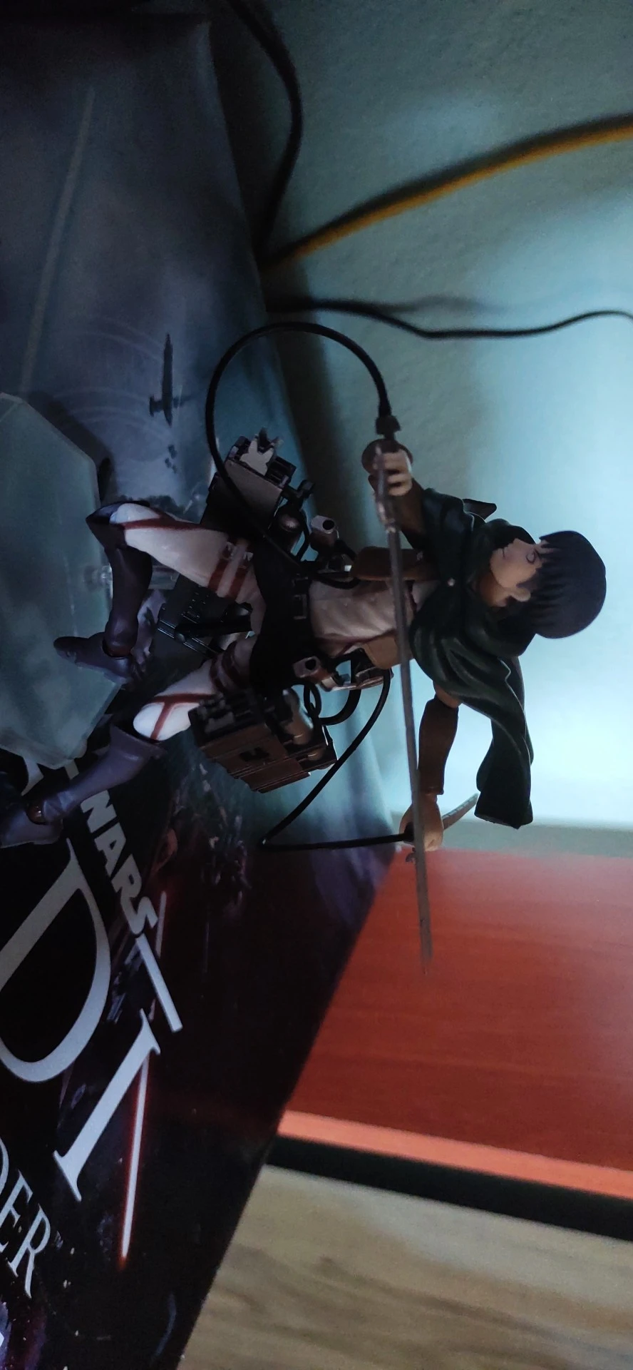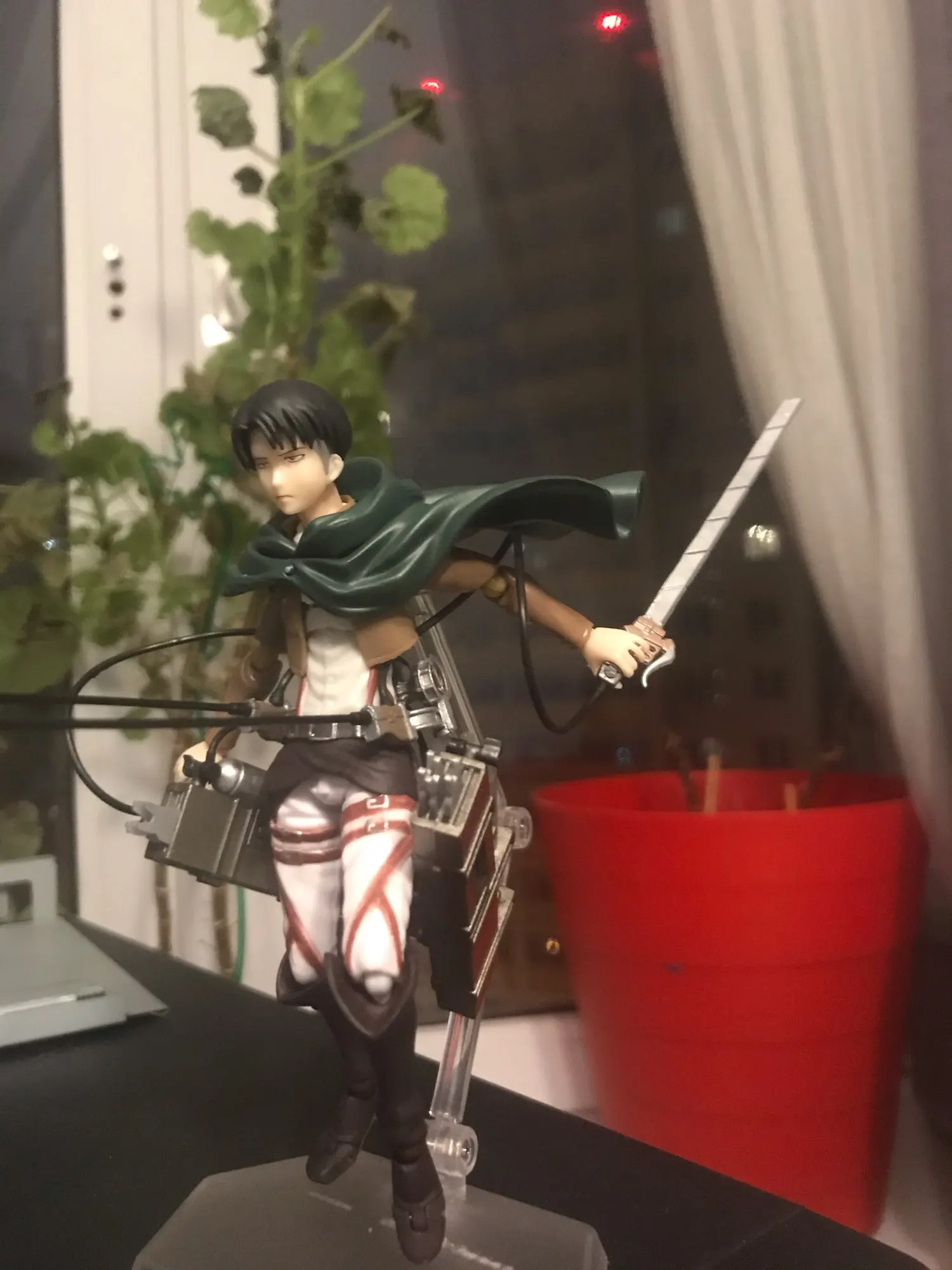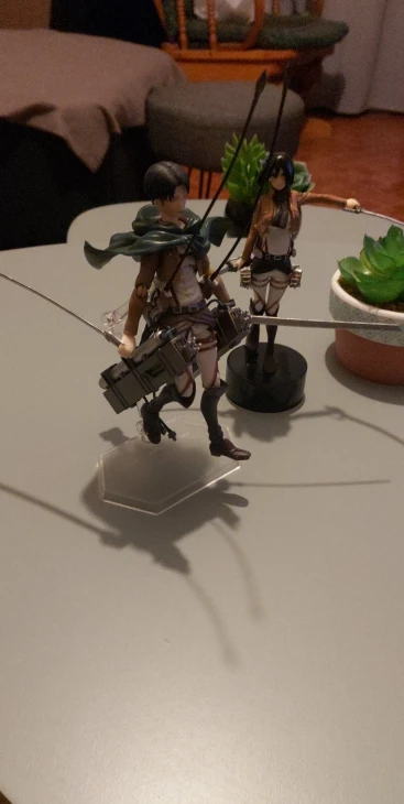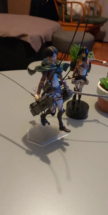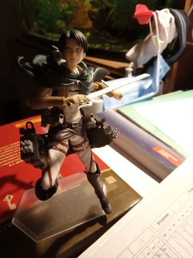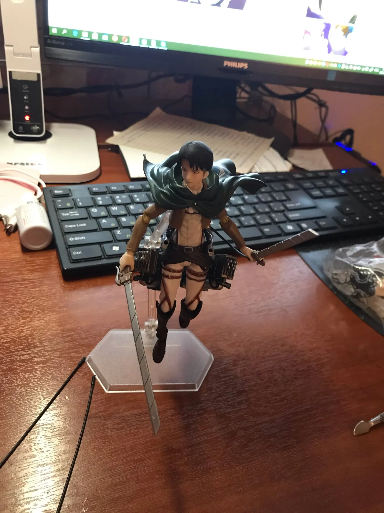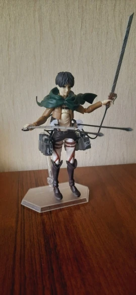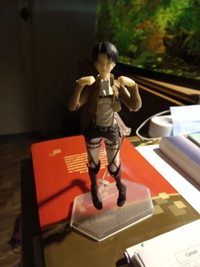 к сожалению фотографии прикрепить не могу, но фигурка отличная за свою цену. очень долго маналась со сборкой и упм, но в итоге все вышло:)) подставка сломалась и она очень неустойчива, пришлось обматывать скотчем, чтобы леви не падал. а так отлично , спасибо большое!!