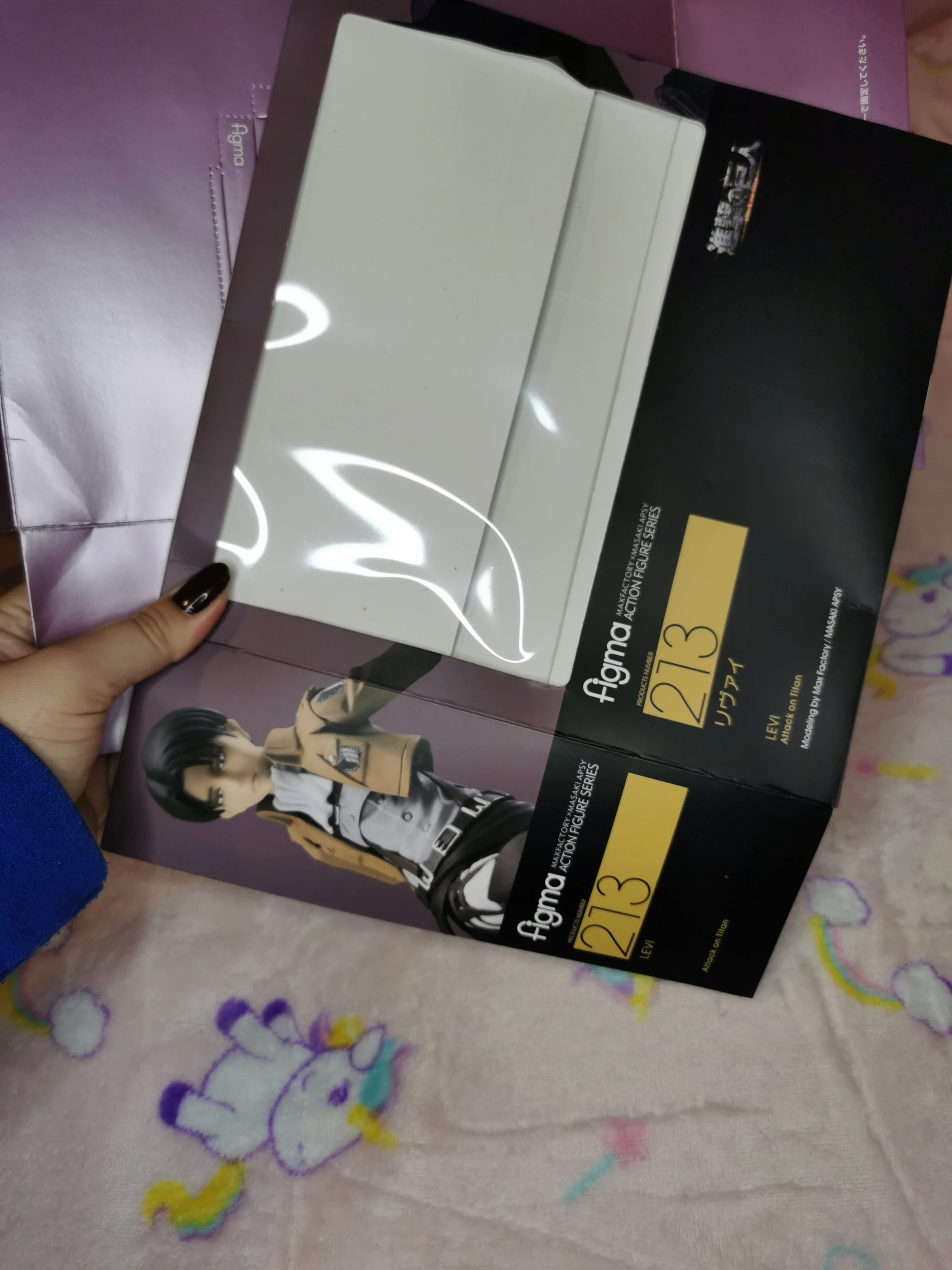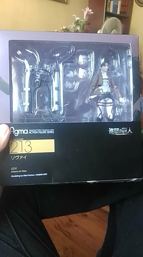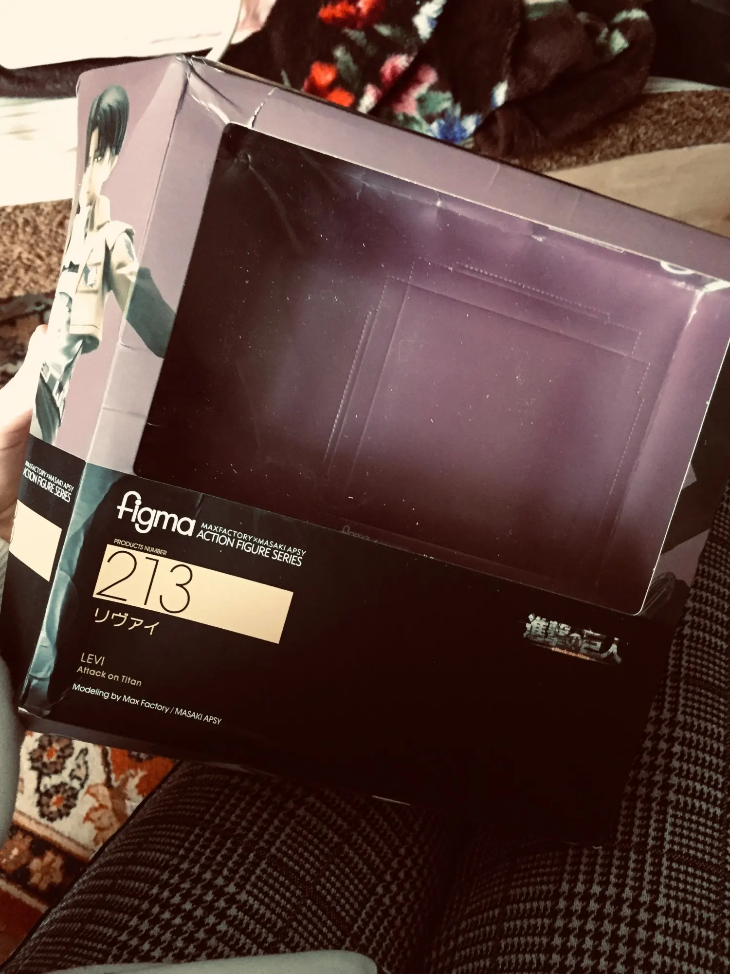 коробка немного повреждена, но не страшно, детали все на месте, фигурка чудесная(обожаю левичку, на седьмом небе от счастья просто^^), небольшие проблемы с ботинком на ноге(отклонён в другую сторону), но в глаза не особо бросается, главный минус в том, что фигура пришла на месяц позже названной даты, но для меня это не страшно, главное что пришла, впрочем я довольна))