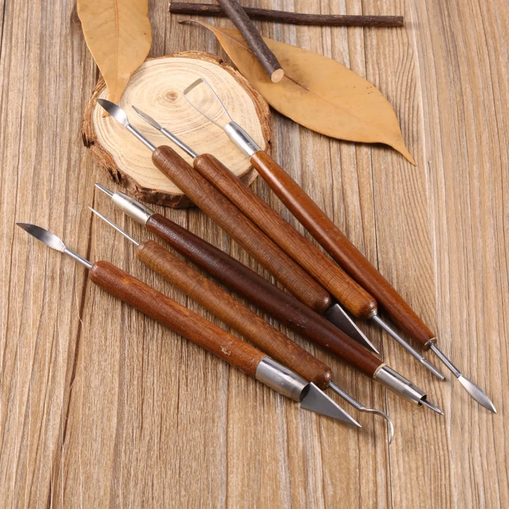 6 шт./компл. глиняный Набор для лепки, восковая резьба, керамические инструменты, деревянная ручка, набор керамики, Набор для лепки глины, скульптурная гончарная керамика, инструменты