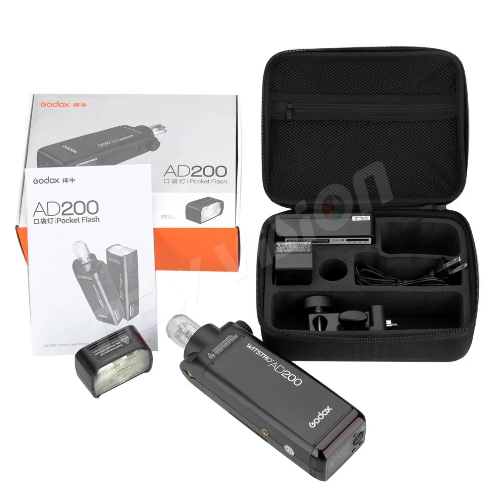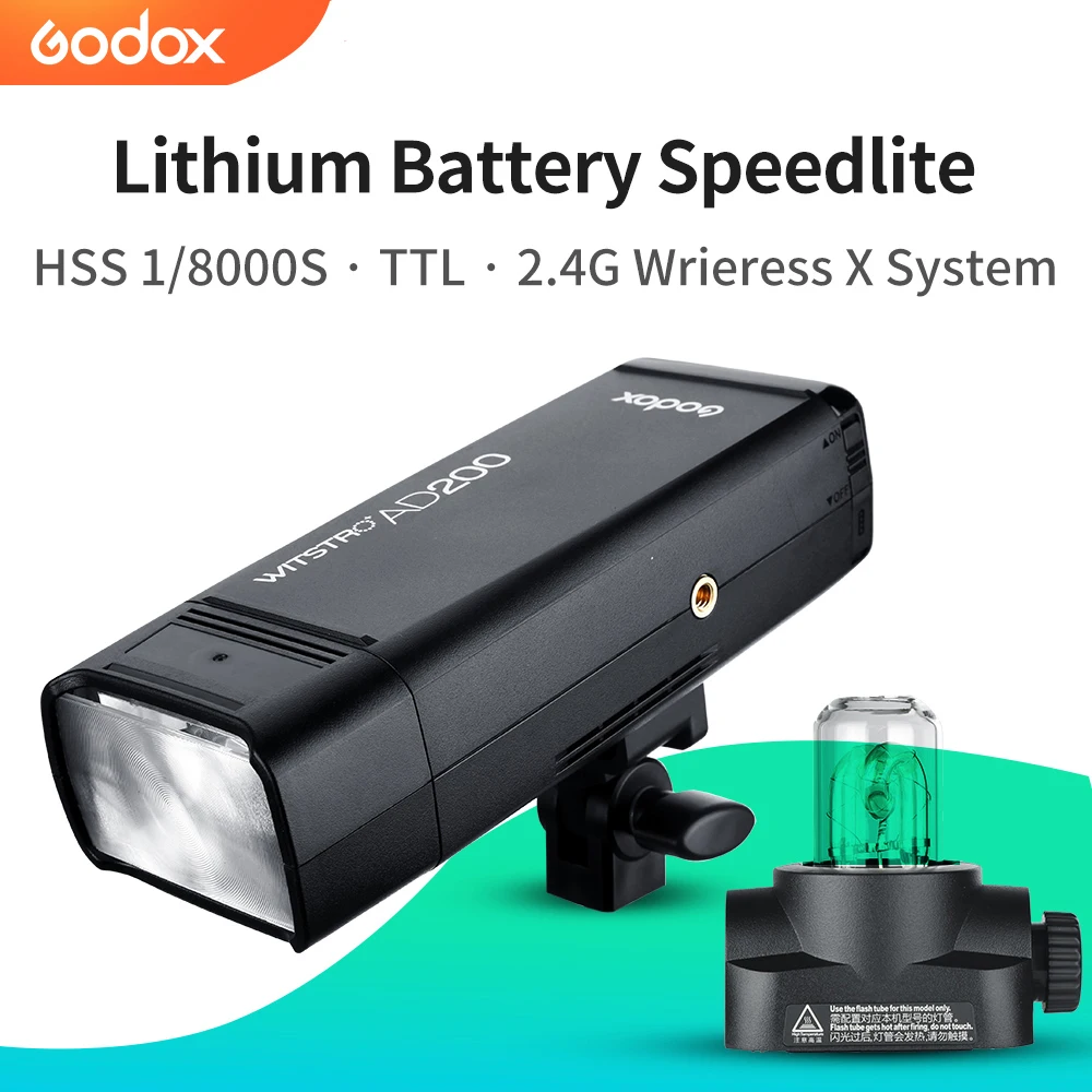 Карманная вспышка GODOX AD200 200Ws TTL 2,4G HSS 18000s, двойная головка, литиевая батарея 2900 мА ч