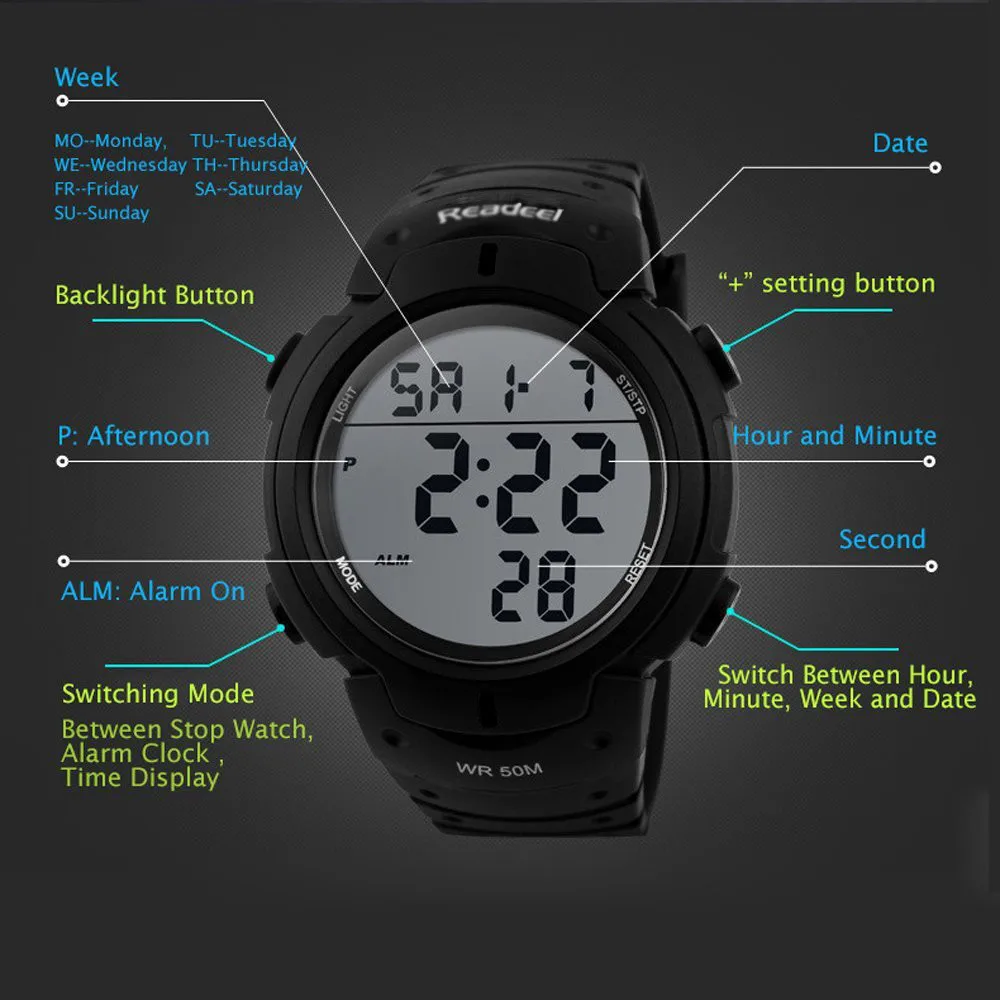 Мужские светодиодные цифровые армейские часы Readeel, спортивные часы для погружения на 50 м под воду и под платье, ударопрочные наручные часы, 2017