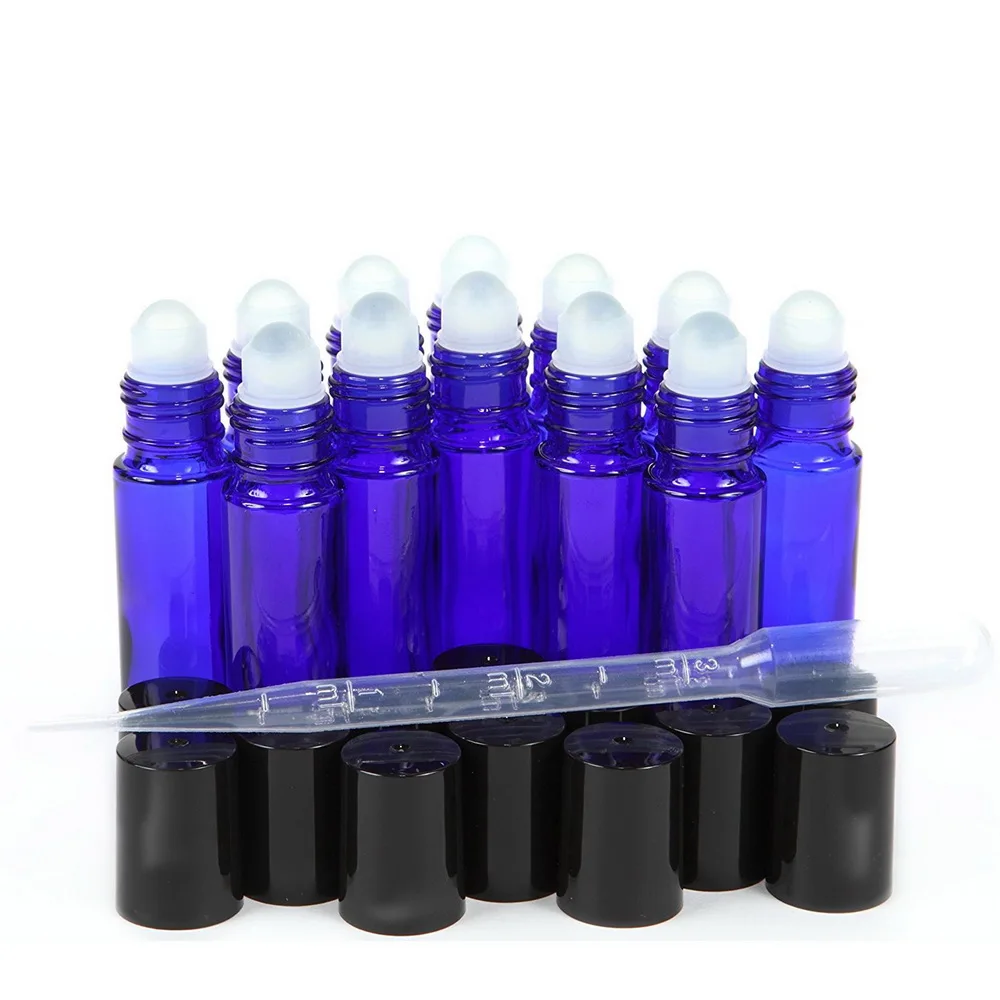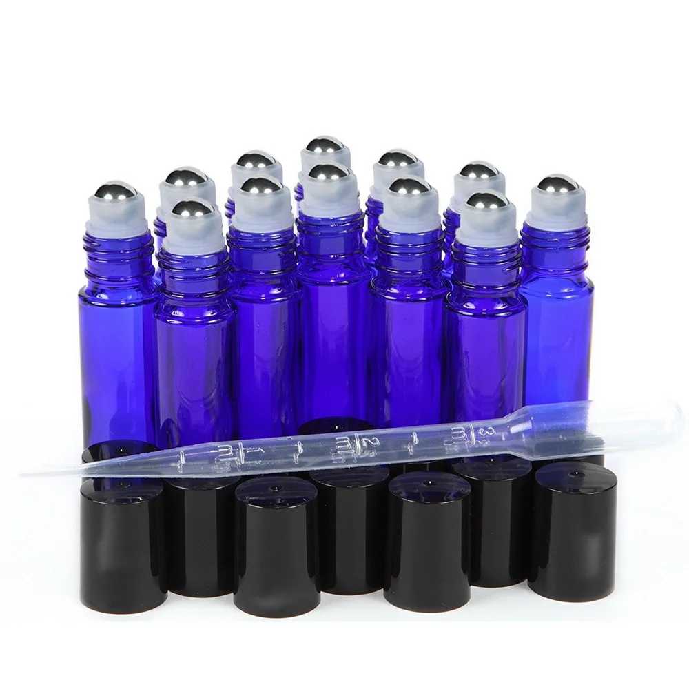 Роллеры для эфирных масел, 12 шт., 10 мл, пустое кобальтовое синее стекло с шариком из нержавеющей стали, парфюмерные эфирные масла
