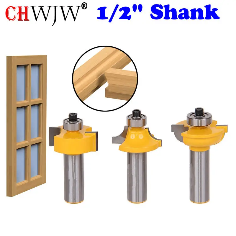 3 шт.компл. инструменты для обработки древесины со стеклянными дверными досками, корончатые фрезы, фрезы с хвостовиком 12, шариковый нож типа T