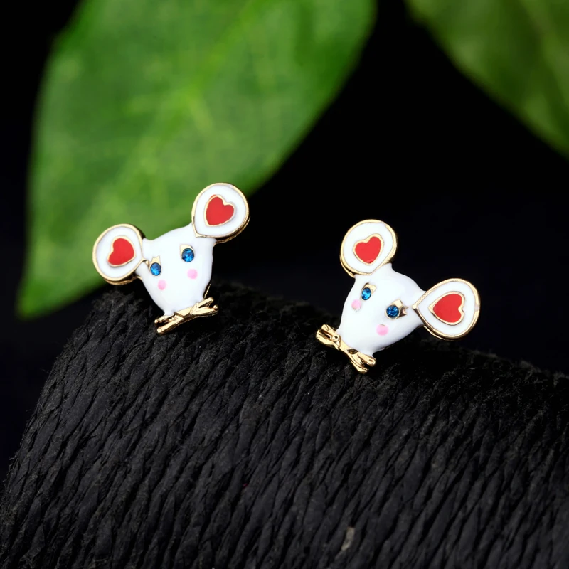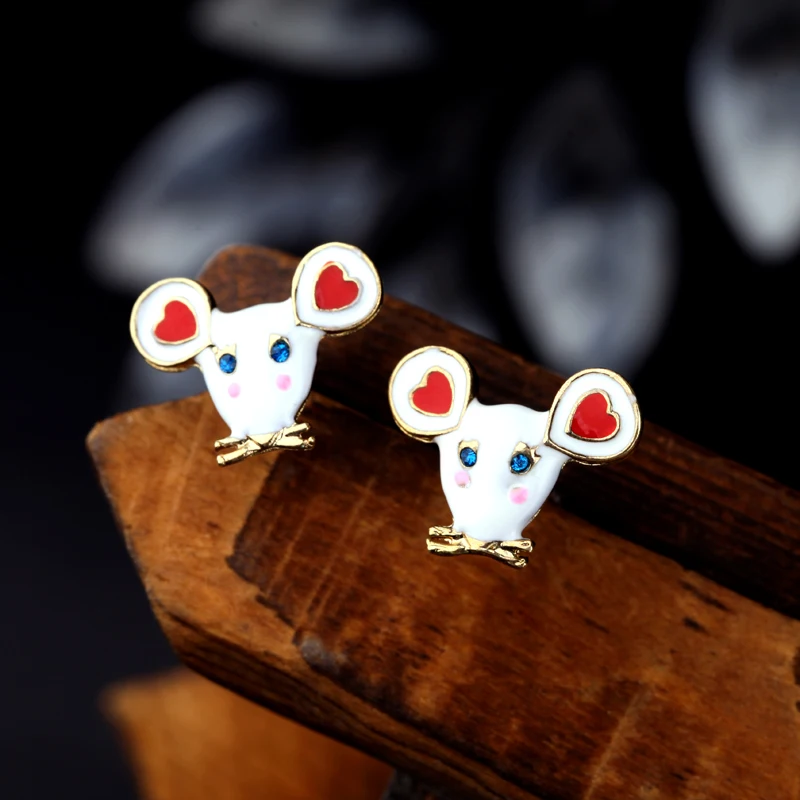Поцелуй меня, милые модные маленькие серьги-гвоздики с мышкой, новые модные серьги из цинкового сплава с эмалью для женщин и девочек