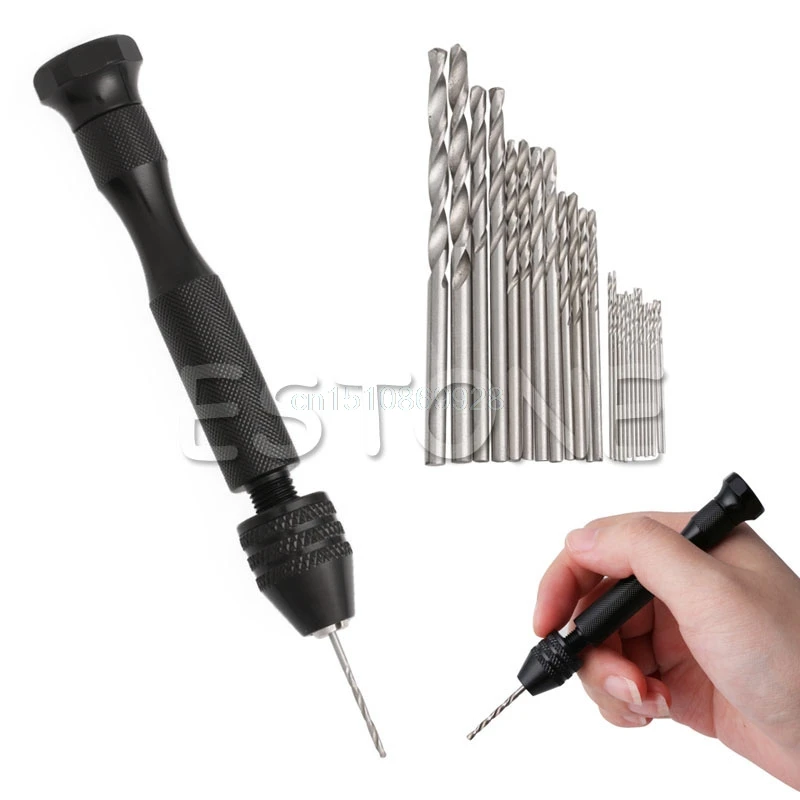 25 шт. твист сверла мини микро 0,5-3 мм + алюминиевая ручная дрель без ключа патрон комплект