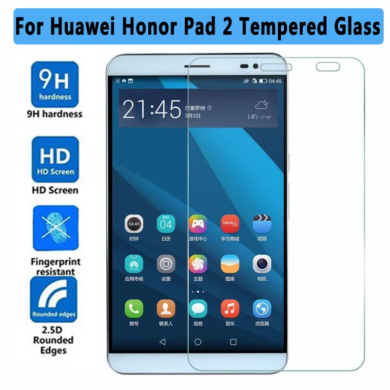Защитная пленка из закаленного стеклаДляHuawei Честь Pad 2 Высокое качество-Максимальная защита от царапин, царапин. 2.5D Arc Edge Treatment-полированные края для плавной работы. Ультрапрозрачный светильник с высоким коэффициентом пропускания для совершенно нового экрана