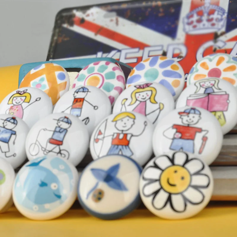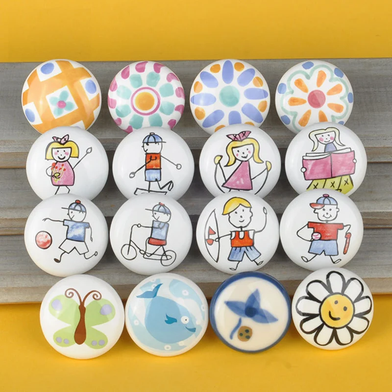 Детское милое креативное украшение для спальни, белый цветочный узор, керамика для мебели, фурнитура, ручка для шкафа, гардероба