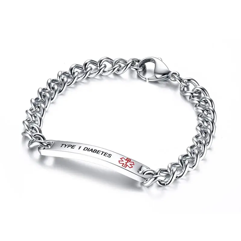 Mprainbow женские браслеты из нержавеющей стали 8 мм Медицинский символ оповещения идентификационная бирка браслет тип при сахарном диабете 1 эпилепсии кумадин