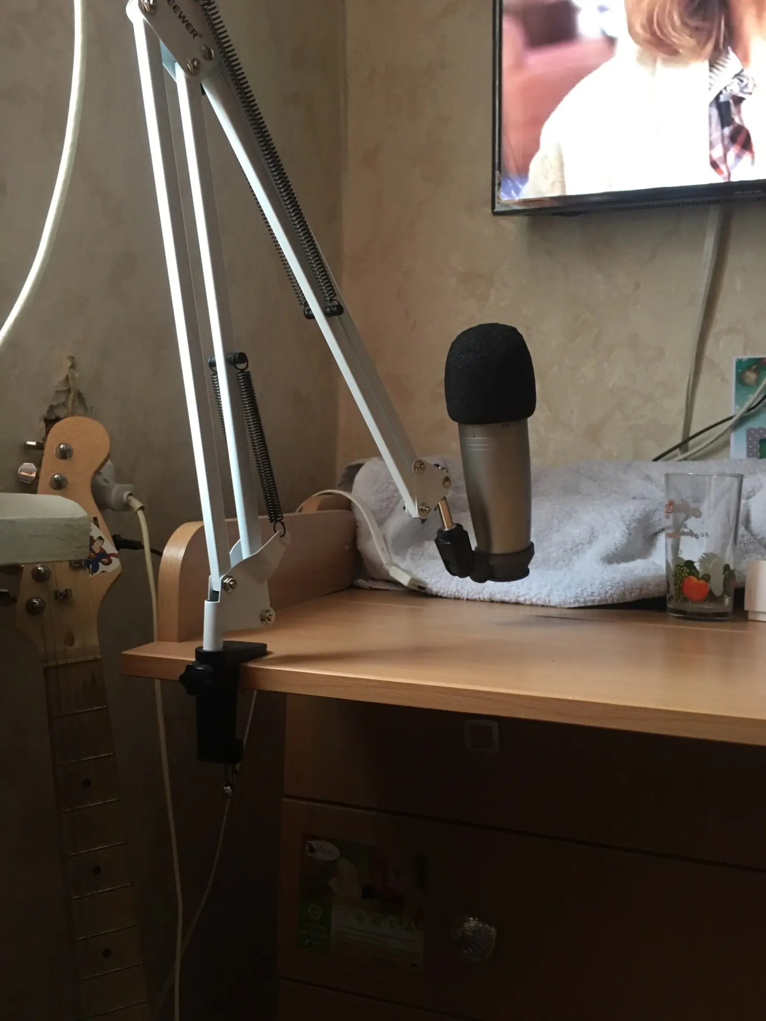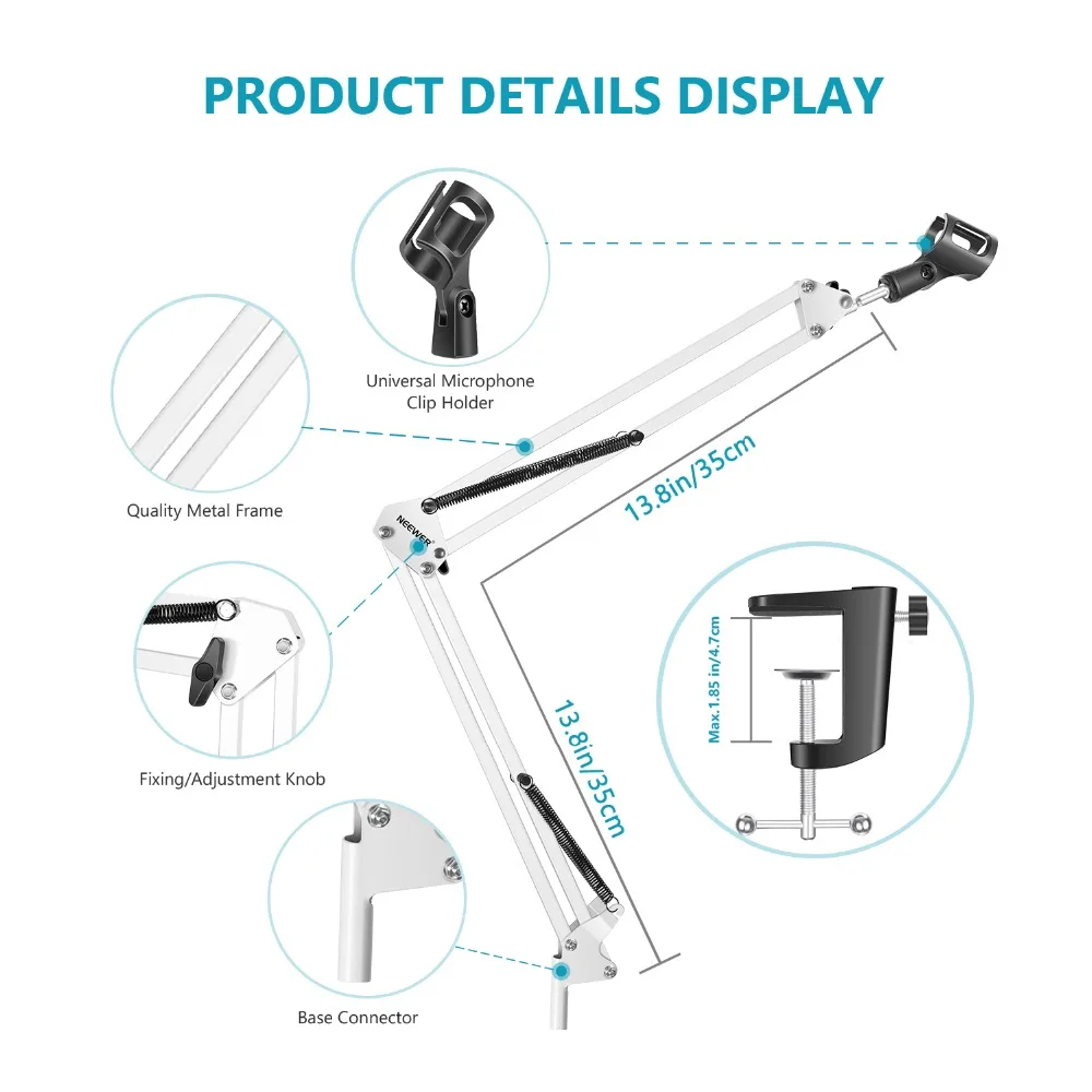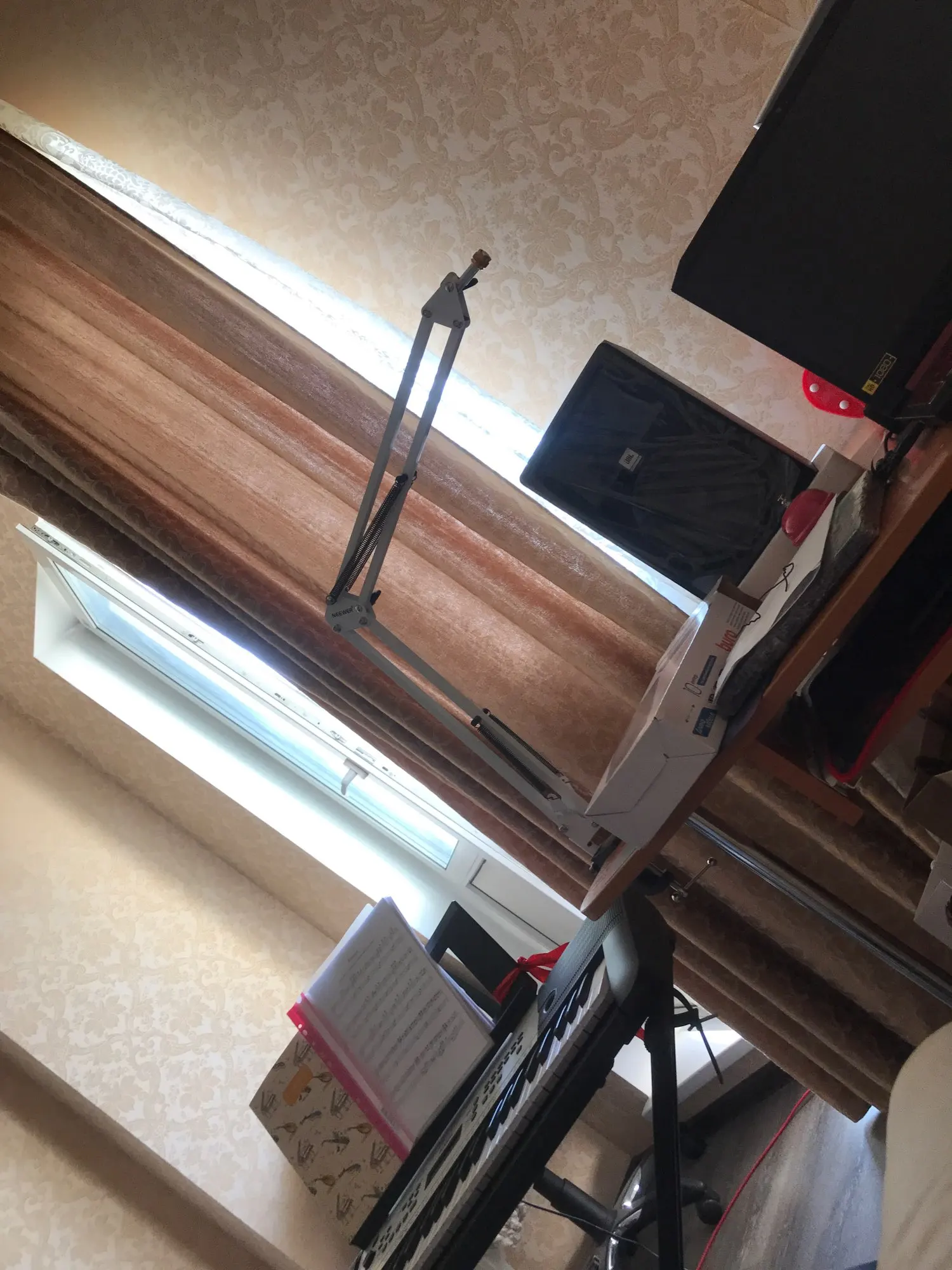 За свои деньги отличный пантограф. Струбцина цельная, а не приклеенная что очень хорошо. НО! Если будете ставить конденсаторный микрофон то лучше докупите потом пвука (паук для микрофона). Так как прижины при малейшем задевании выбрируют и создают шум в микрофоне. Как вариант обвязать верхние пружыны какой нибудь тряпкой чтоб не было выбрации. И не пугайтесь. Вибрация это проблема всех пантграфов. По этому паука и ставят. Пантограф советую к покупке!