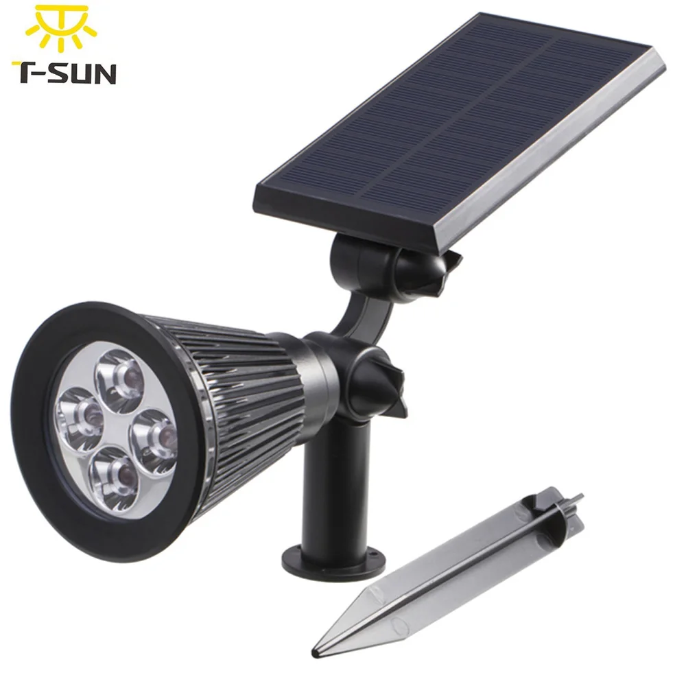 T-SUN, 2 упаковки, светодиодный Солнечный Прожектор, 4 светодисветодиодный, зеленый, водонепроницаемый, для улицы, сада, ландшафта, лампы для деревьев, двора, газона