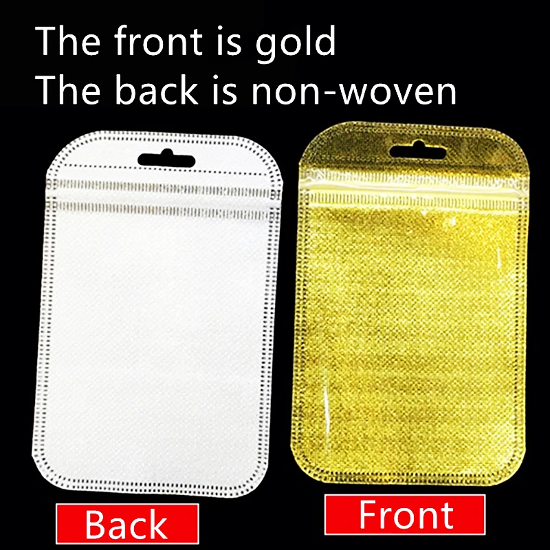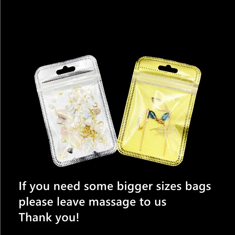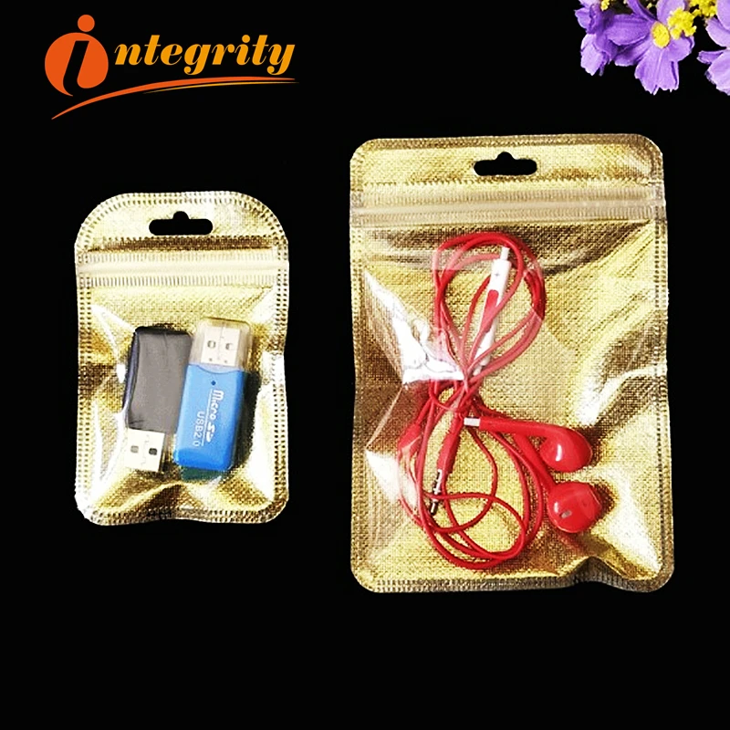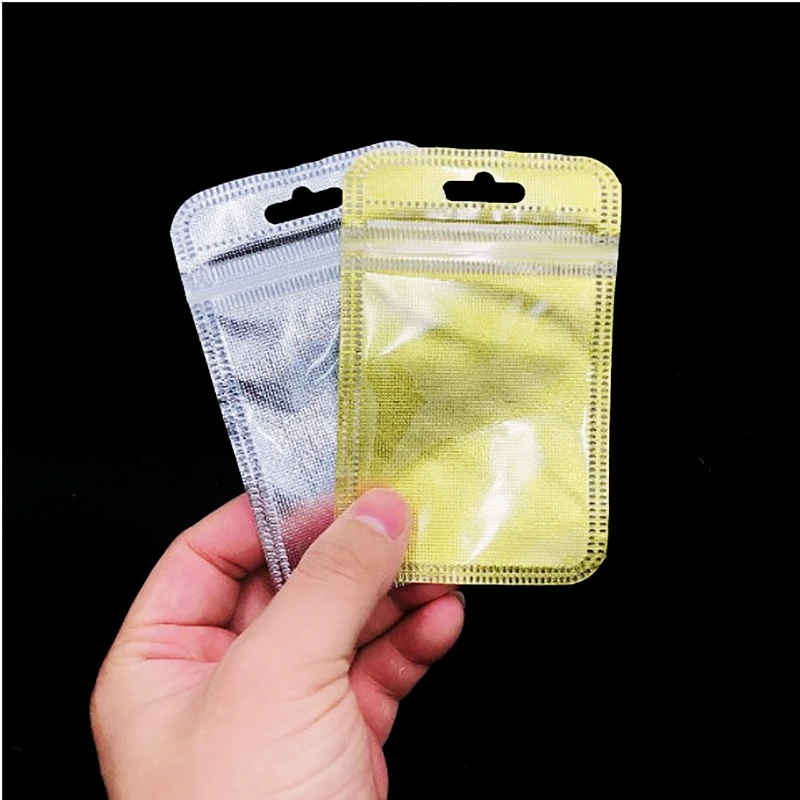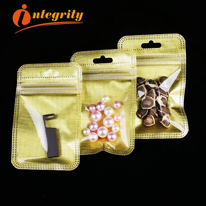 Самозакрывающийся пластиковый пакет для хранения на молнии, 7 х11 см, золотистыйсеребристый, с отверстием для подвешивания, 100 шт.лот