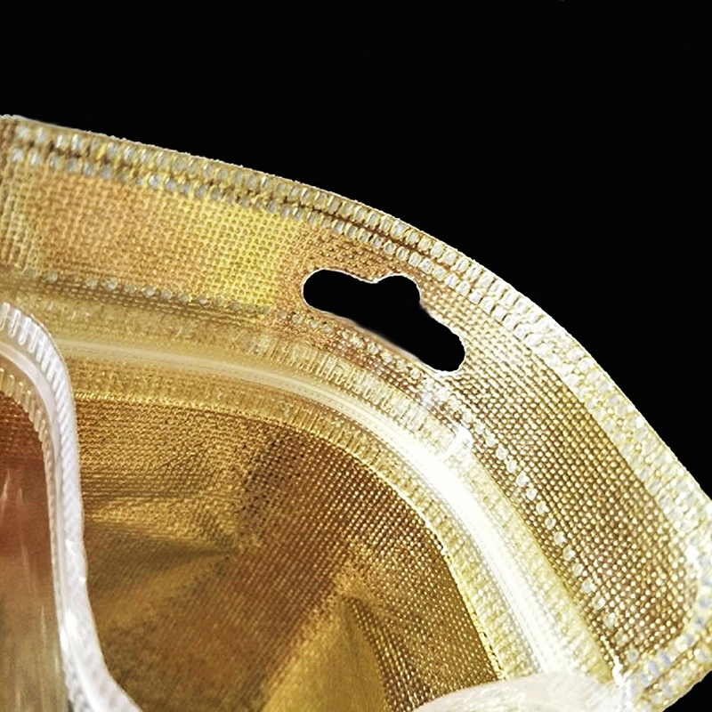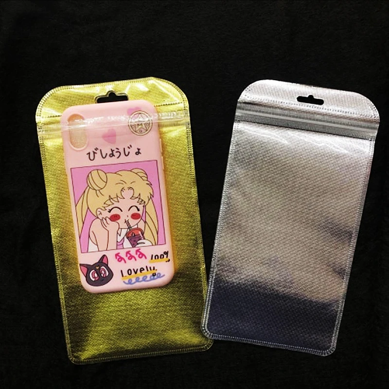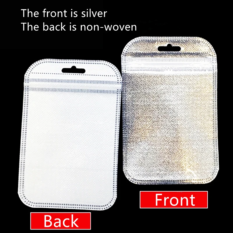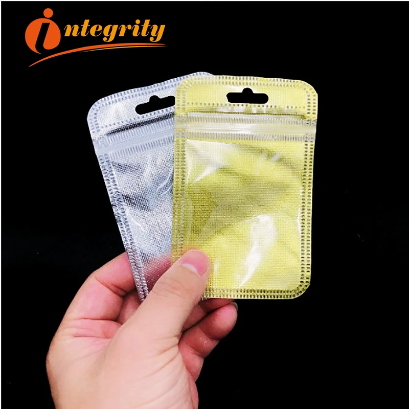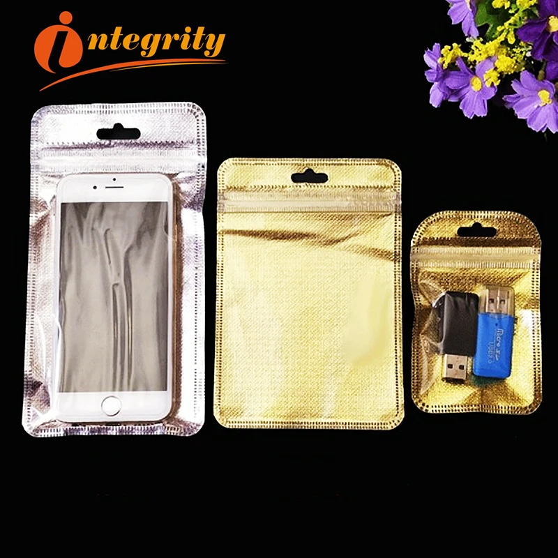Самозакрывающийся пластиковый пакет для хранения на молнии, 7 х11 см, золотистыйсеребристый, с отверстием для подвешивания, 100 шт.лот