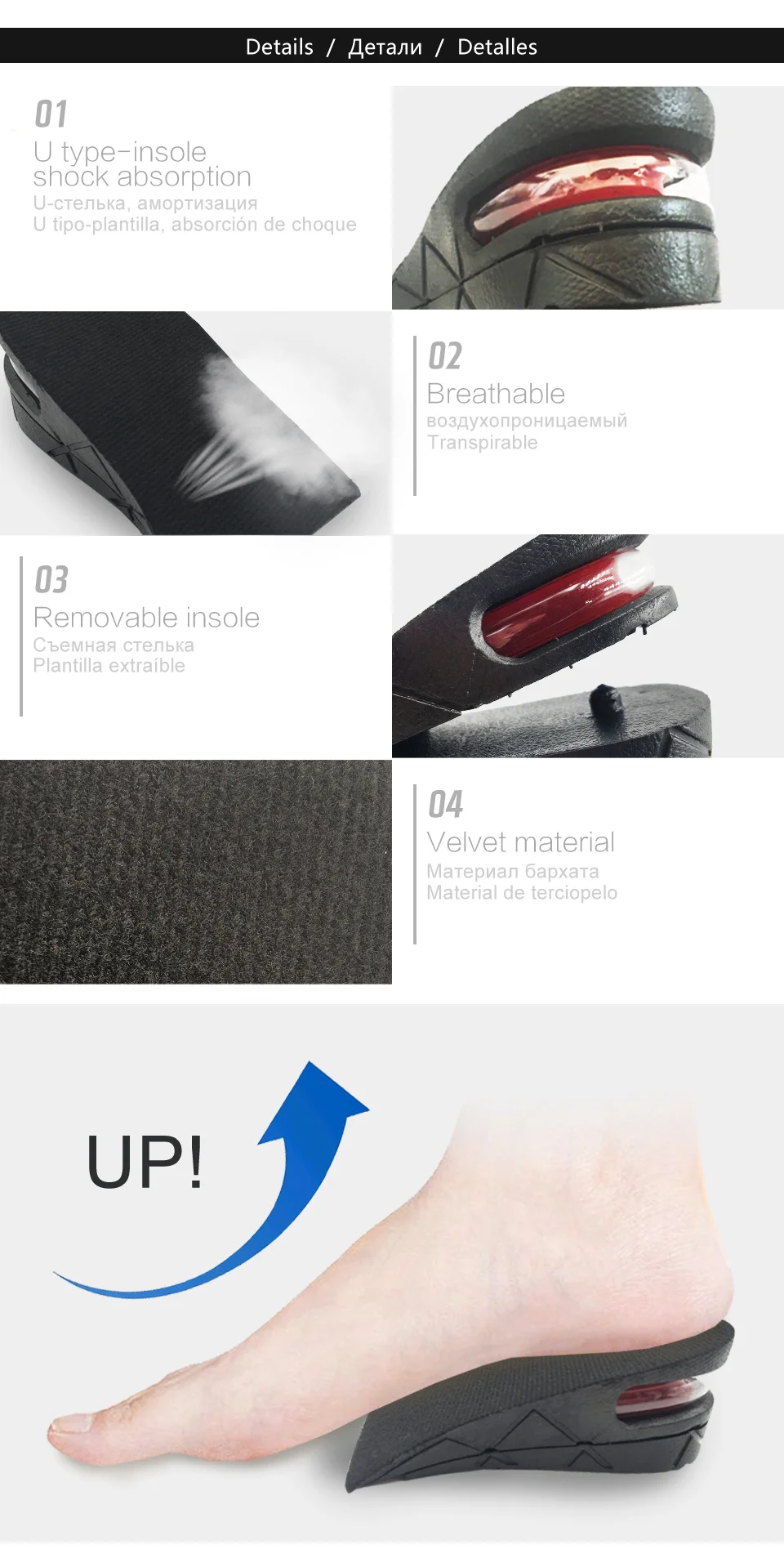 Невидимые стельки KOTLIKOFF для увеличения высоты, регулируемые, 2 слоя, 3 см4,5 см, накладки на воздушную подушку, стельки для увеличения высоты, вкладыши для обуви