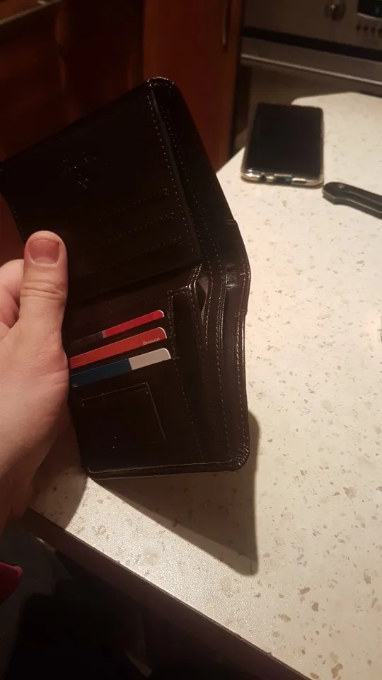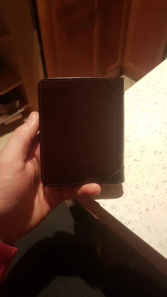 Кошелек имеет красивый коричневый цвет, хорошо вписывается в задние штаны и довольно большой. У него есть пара вещей, которые я бы снял
