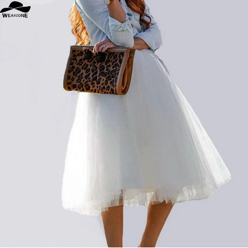 Новинка, пышная женская шифоновая фатиновая юбка, белая, faldas, высокая талия, средней длины, шифон, большие размеры, гранж, Jupe, женские юбки-пачки