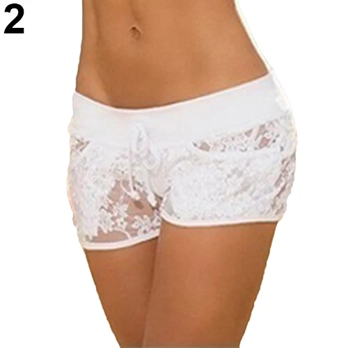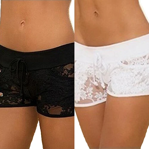 Сексуальные женские кружевные прозрачные однотонные летние Клубные брюки с низкой посадкой