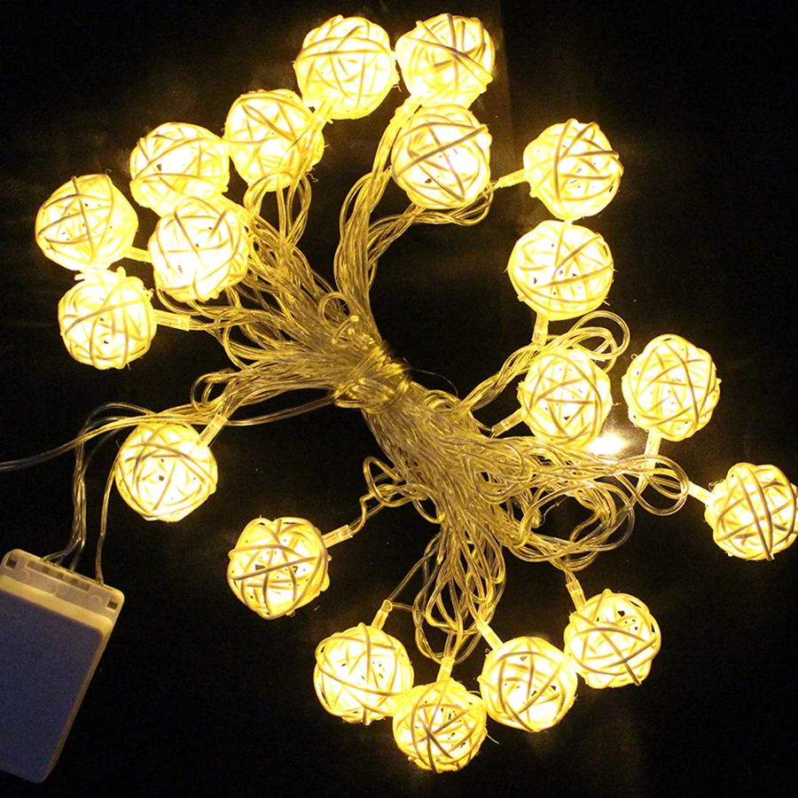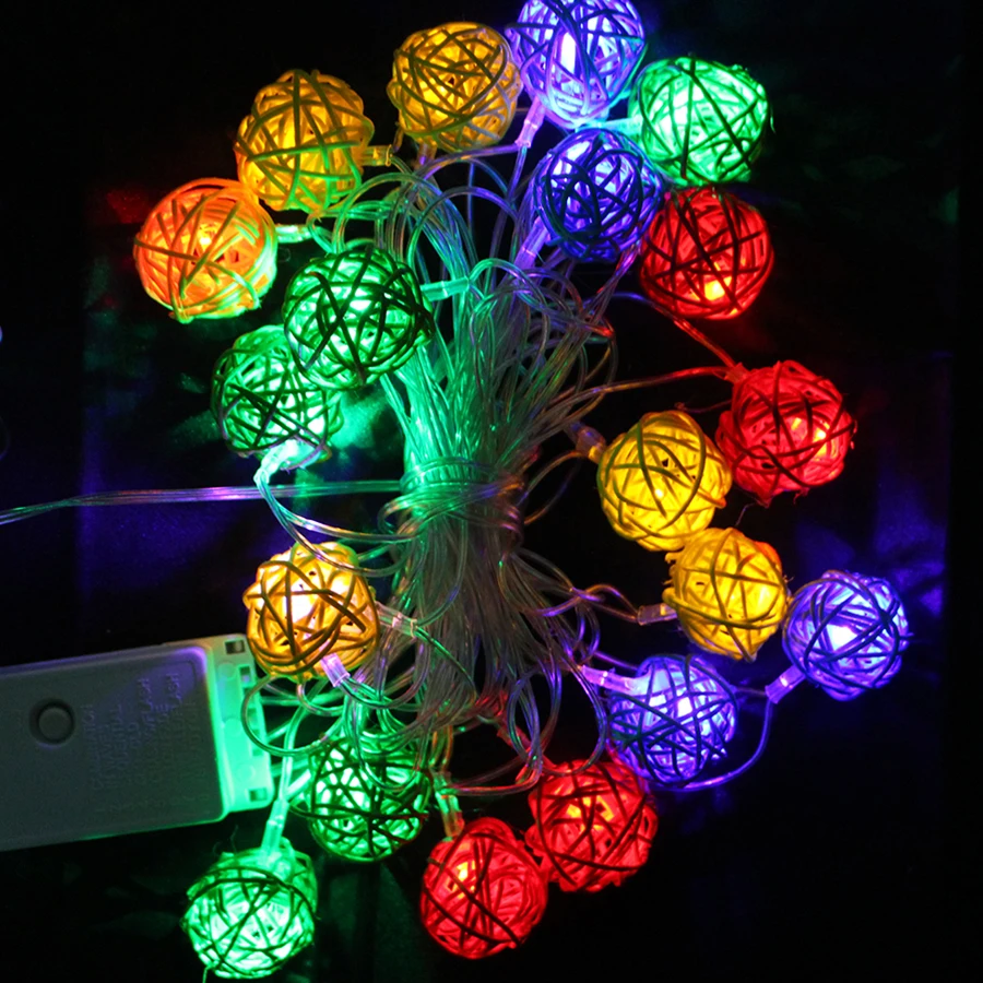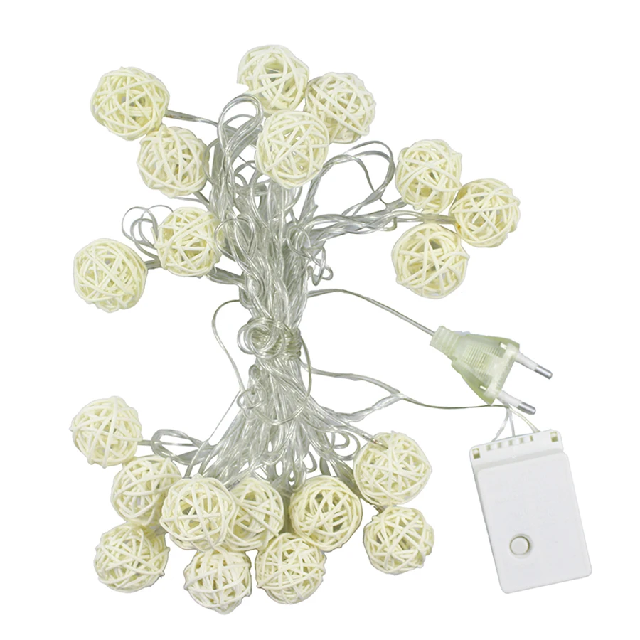 Светодиодная гирлянда с шариками из ротанга, гирлянда на батарейках...