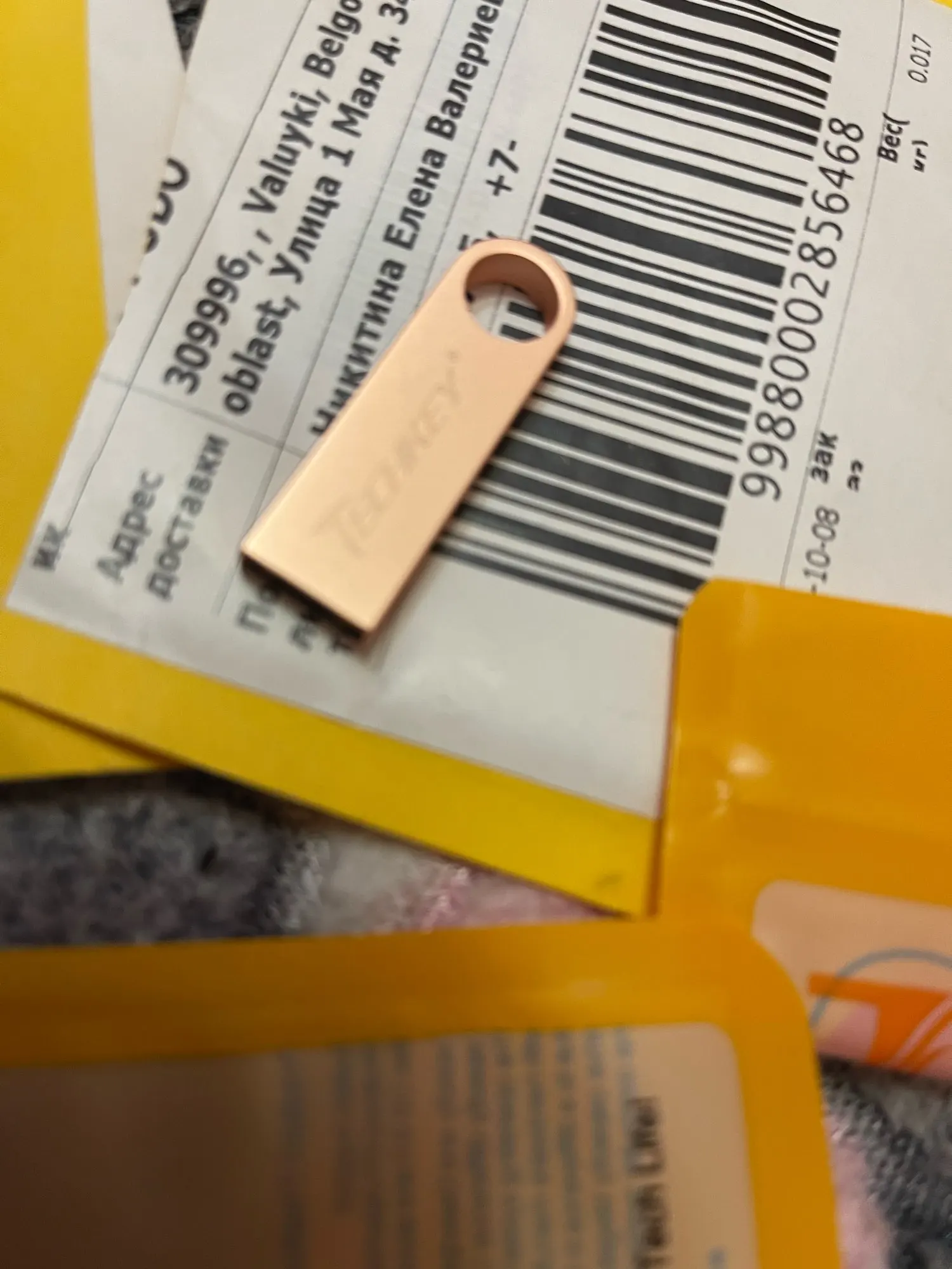 До Москвы 4 дня. Доставка в постамат "Пятерочки". С отличным купоном отличная цена - 178,12 руб. Упаковано в желтый пакет-путырку и в индивидуальный фирменный зип-пакет. Все цело, все прилично. Флешка оказалась меньше ожидаемой, что очень хорошо. Приятная. Простая и удобная. Объем соответствует. Нотик нашел, телефон- пока не пробовала. Впечатление осталось лучше, чем ожидалось по фото. Посмотрим, как проявит себя в работе. Рекомендую товар и продавца. Всех благ!