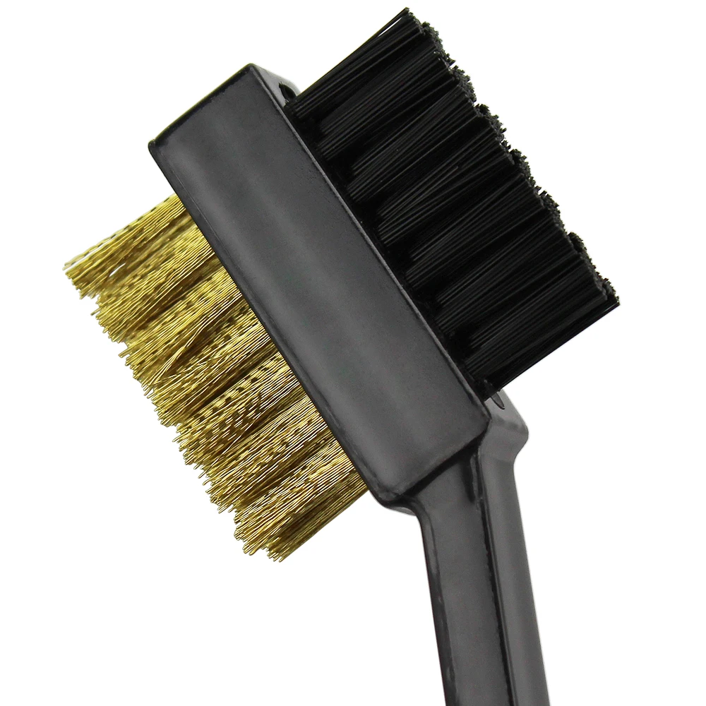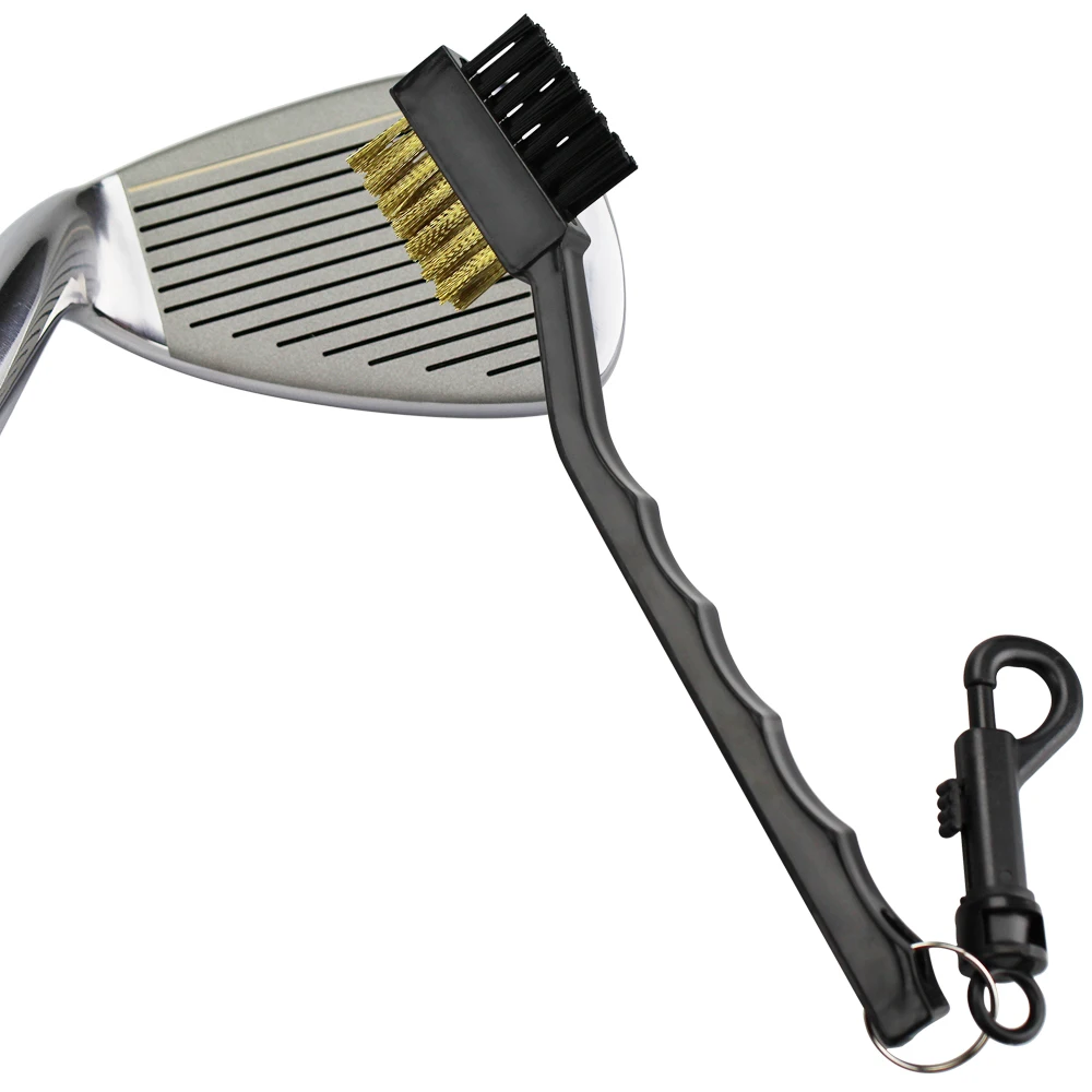 Щетка для гольфа, 2 сторонние латунные провода, нейлоновый набор для чистки с брелоком, щетка для очистки пазов ключа для гольфа, клуба, Прямая поставка