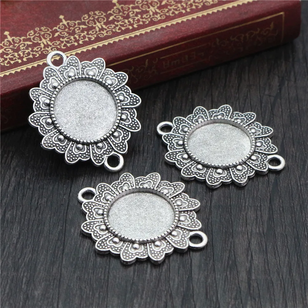 10 шт. 16 мм внутренний размер античная бронза Посеребренная соединение с цветами стиль кабошон основа Камея Установка Подвески