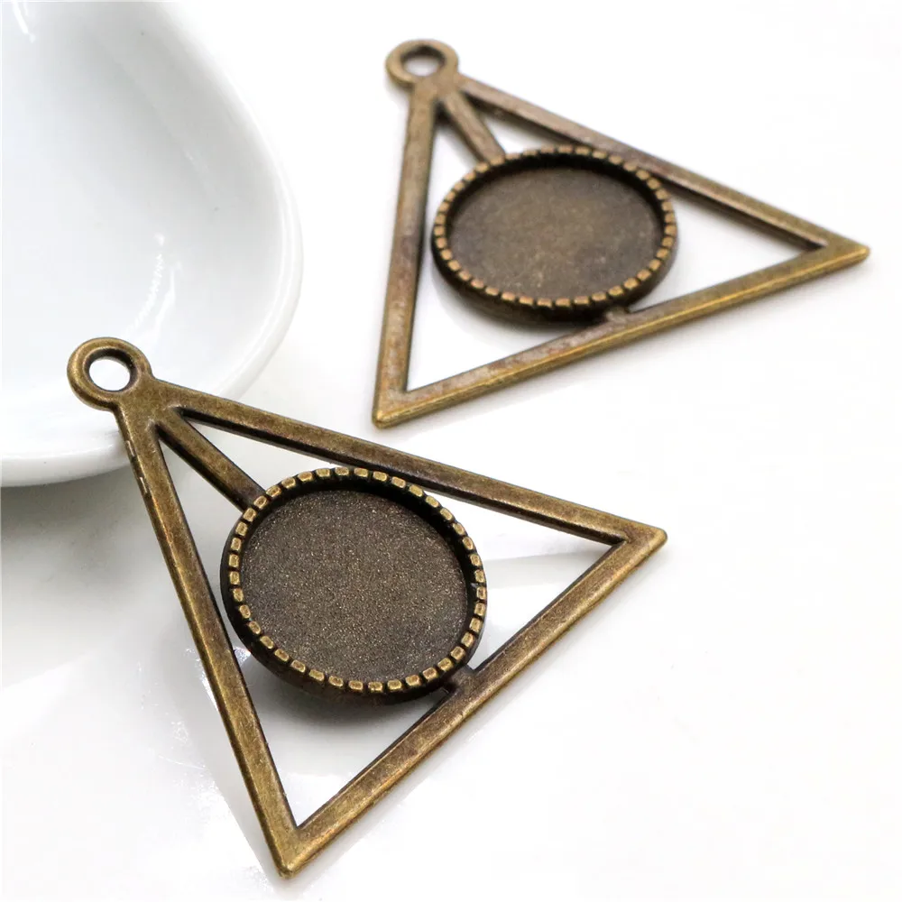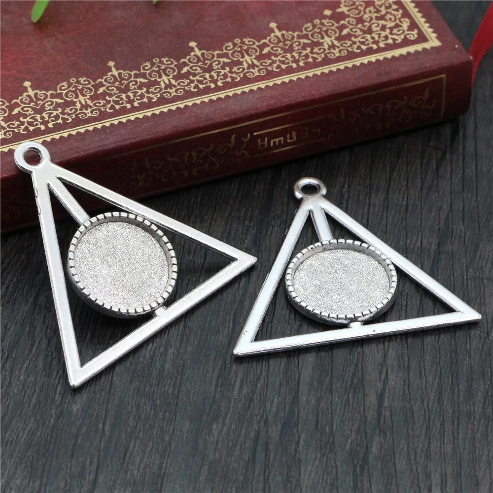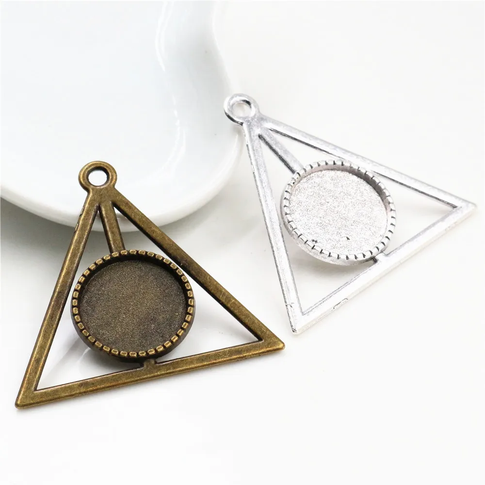 10 шт 16 мм Внутренний размер Античная бронзовая Посеребренная треугольная форма кабошон базовая Камея Подвеска Подвески