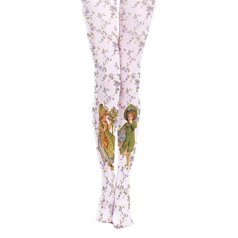 RUIN 2017 Весенние Новые пасторальные фиолетовые цветочные милые колготки с принтом для маленьких девочек, женские чулки