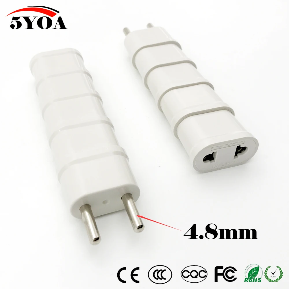 Компактный дизайн для путешественников или домашнего использования Светильник вес, подключи и играй горячей замены, просты в установке и использовании Конвертировать штепсельную вилку переменного тока в евро Длина штифта(Диаметр): 4,8 мм Вход: Преобразование всех стран (за исключением Великобритании) штепсельная вилка переменного тока в европейский стиль Выход: (2 круглый штифт) Вилка стандарта ЕС-ов)-4,8 мм (длина) 3V - 250V AC, 0.5A - 10A Простота в использовании, подключи и работай Вес нетто: 8 ~ 12 г/шт.Посылка включает в себя: