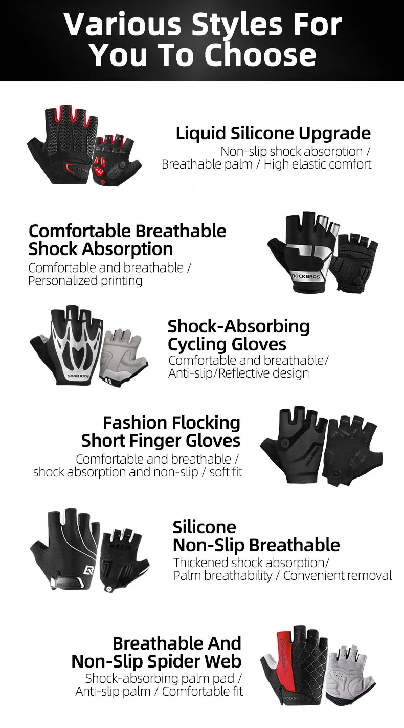 ROCKBROS Велоспортные Велосипедные Перчатки Половина Короткий палец Противоударные Дышащие MTB Дорожные Велосипедные Перчатки Мужчины Женщины Спортное Велоспортное Оборудование