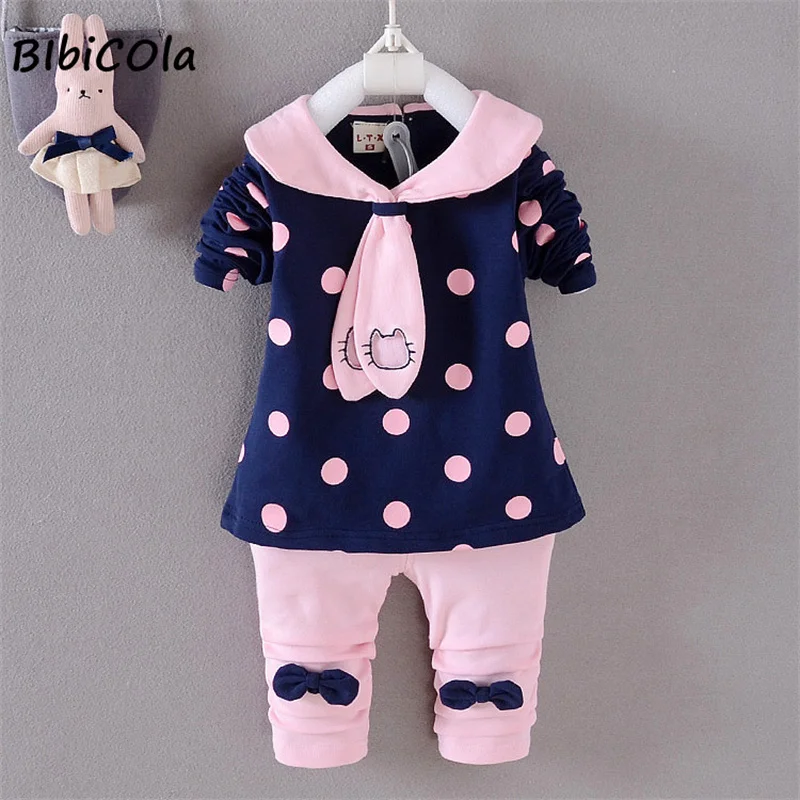 Комплекты одежды для девочек BibiCola, осенняя одежда для малышей, пальто в горошек + штаны, 2 предмета, весенний спортивный костюм для девочек, одежда для малышей
