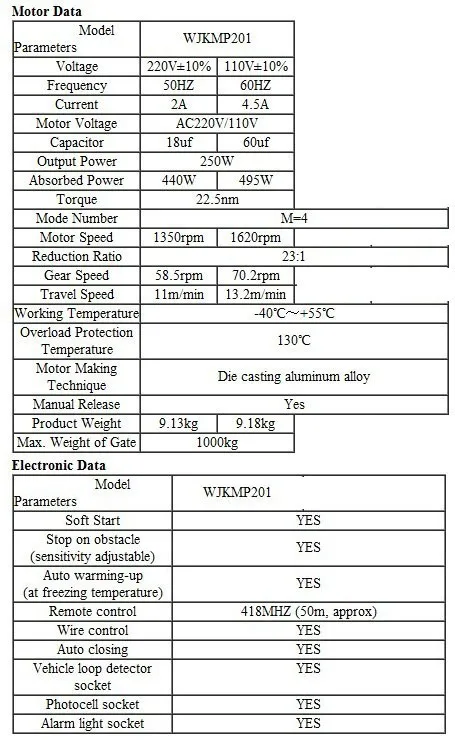 "2 комплекта"В комплекте: 2 мотора раздвижных ворот кг +8Пульт дистанционного управления (4 пульта управления для каждого двигателя) +2 парыИзИнфракрасные Фотоэлементы+2 сигнальных лампы+11 м стальСтойки