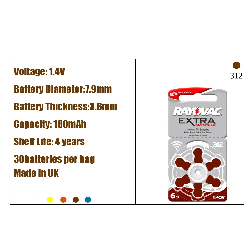 60 шт., батарейки для слухового аппарата Rayovac 312 312A A312 PR41. Бесплатная доставка, Цинковый воздушный слуховой аппарат, батарея